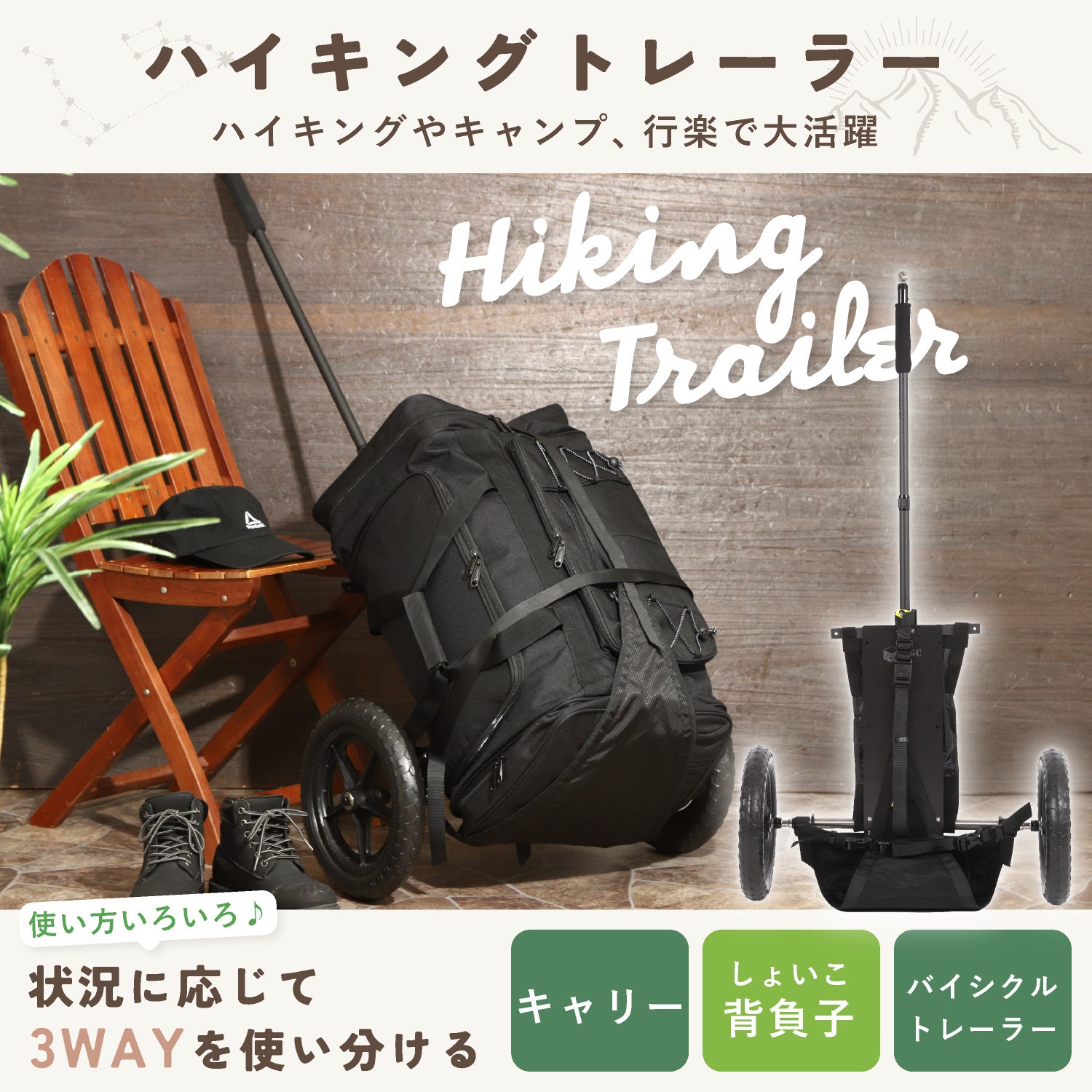 背負子(しょいこ)・キャリー・バイスクルトレーラーの3WAY。