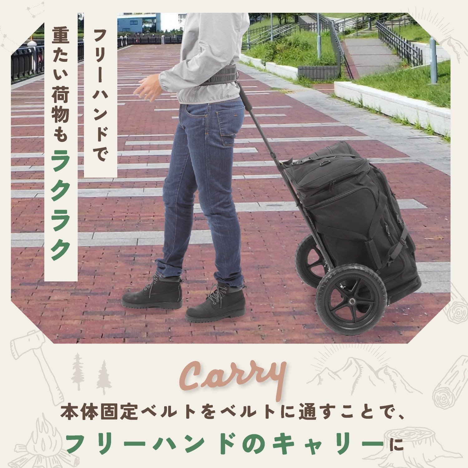 プライベートでキャンプやハイキングに出かける事が多い私も『重い荷物を手軽に運べるキャリーが欲しい』と思っていました。