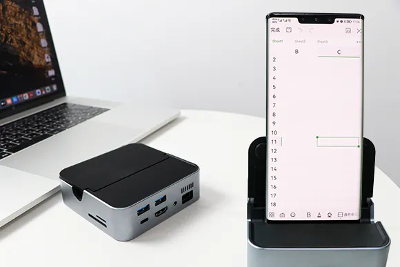 スマホを差し込むだけで、色んなデバイスに接続することが出来るようになります。「マウス、キーボード、プリンター」だけではなく、「4Kテレビ、イヤホン、メモリーカード、有線LAN」にも簡単に接続出来ます!