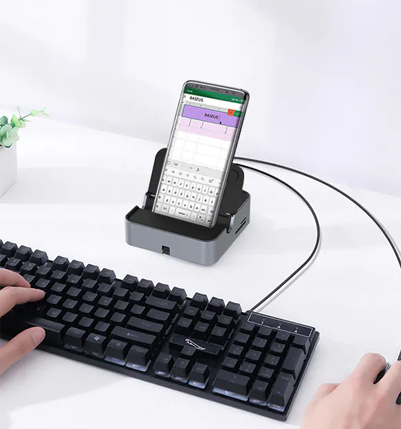 【TRANX】には2つのUSB3.0ポートがあります。マウスやキーボードを【TRANX】によってスマホに繋げることで、より効率的に仕事が出来ます。
