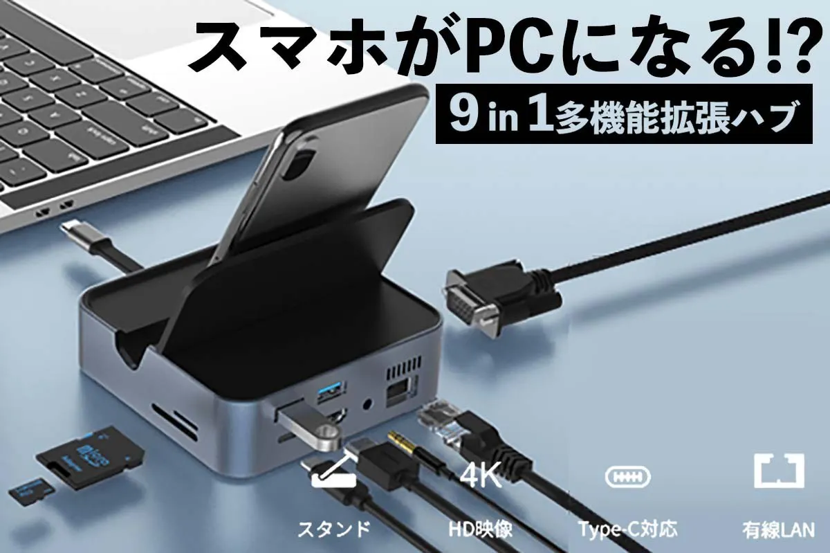 ・9つのポート搭載で簡単にスマホをパソコンのように多機能に!