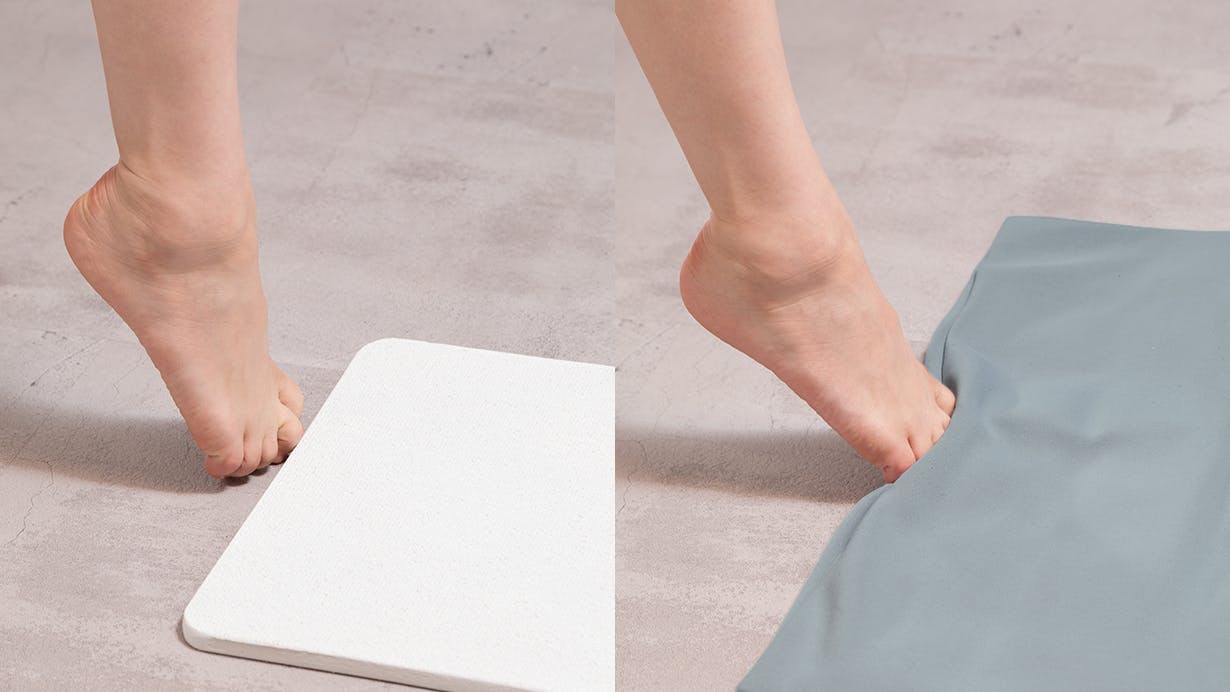 軽いのでマグネットクリップなどで洗濯機につけておいたり、やわらかいため折りたたんでの保管も可能。板状の珪藻土バスマットのように立てかけておく必要もないので、倒れて割れる心配もありません。また、使用していて床にキズを付けることもありません。