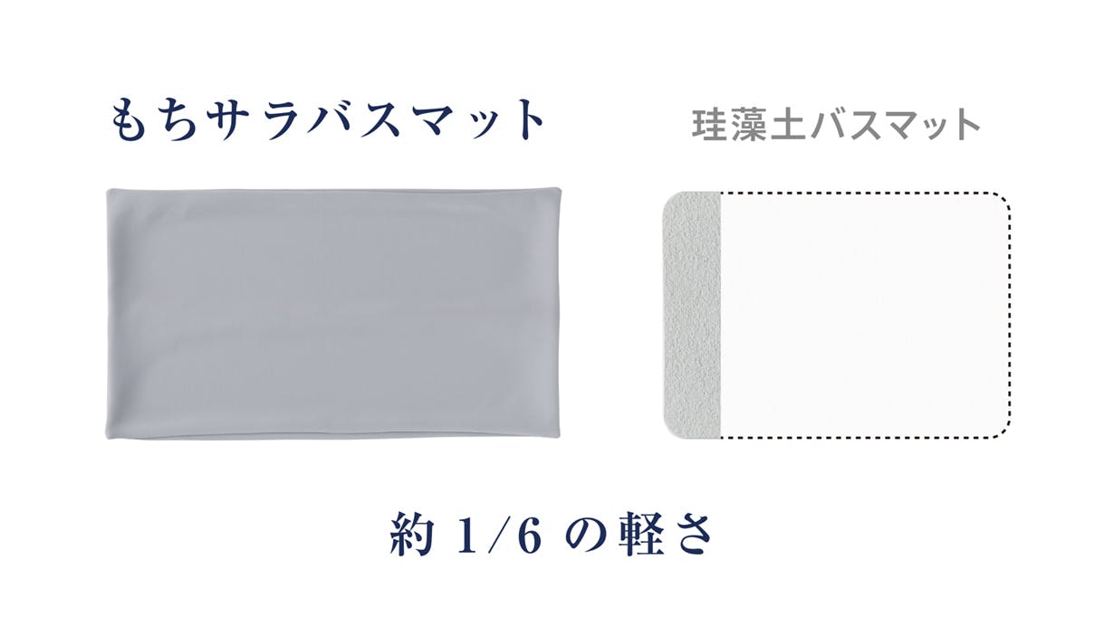 Mサイズ約270g、Lサイズ約400g、LLサイズ約1040gと同サイズの板状珪藻土バスマットと比べ軽量。