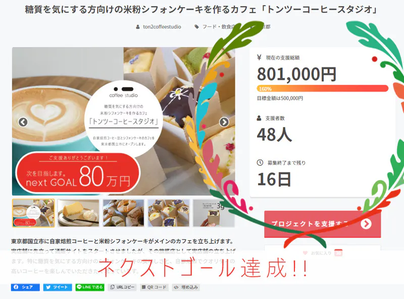少しでも多くの方にお店のことやシフォンケーキのことを知って頂きたいと思いクラウドファンディングに挑戦しようと思いついたものの、初めてのことでどういう結果になるか全く分かりませんでした。