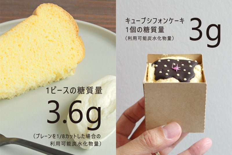 血糖値の上昇に影響する糖質量(利用可能炭水化物量)を抑えて、なおかつ美味しさを追求したシフォンケーキ
