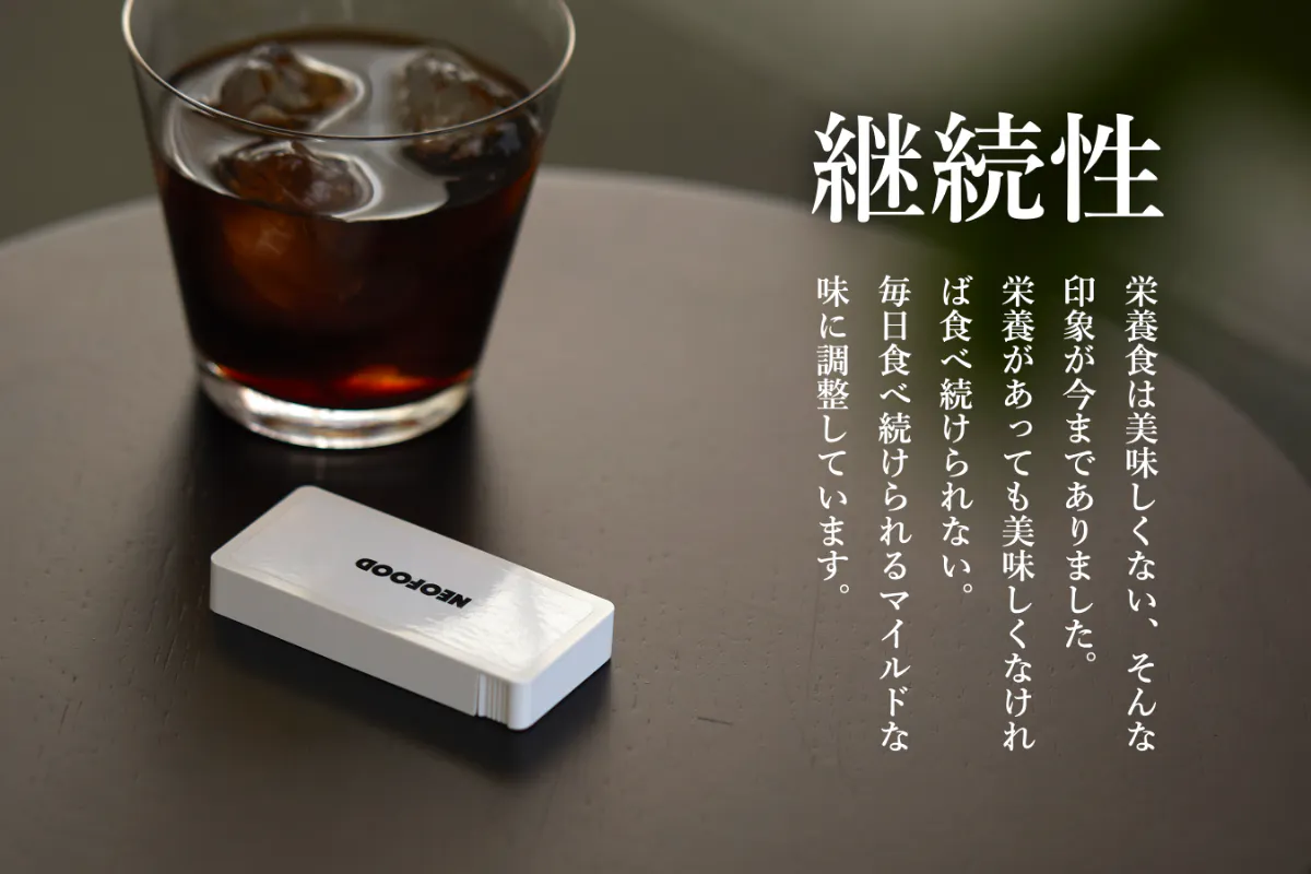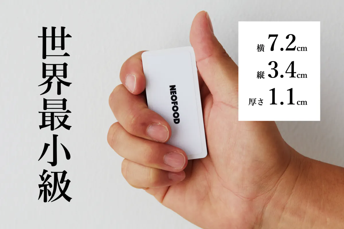 世界最小級サイズの完全栄養食としてスマホのようにポケットに入れて持ち運ぶことができます。移動中や仕事中も手軽に摂取可能。