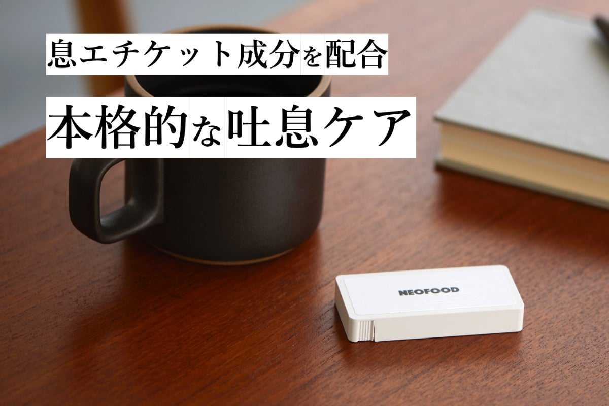 水分なしでそのまま食べられないと利用シーンは減ってしまうことを考えて、吐息ケア用の錠菓子としてすぐに口に入れて食べられる形式を採用しています。電車での移動中や、デスクでの仕事中、会議前や会食後に吐息ケアとしてサッと食べても不自然になりません。