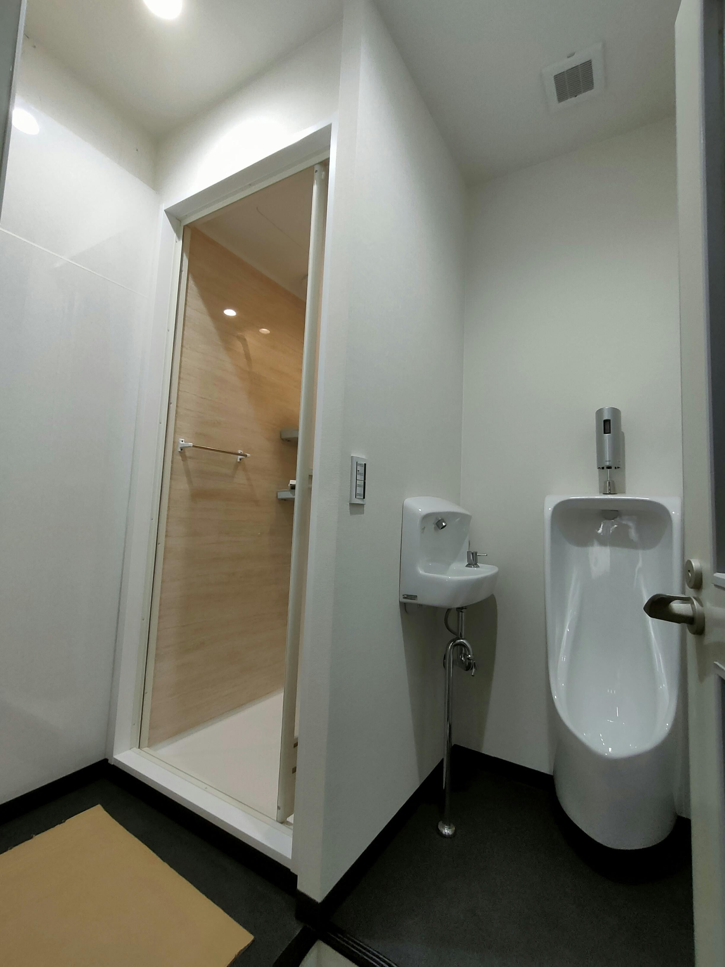 旧道場にはシャワーが2基。ただ、コロナパンデミックが発生した当初に使用を禁止としました。理想を言えば、練習後にシャワーを利用することで個々の感染リスクは低減できるのですが、不特定多数がシャワーを利用する際に唾液など吐き出すことが容易に想像できるため、運営するスタッフ(当時私ともう一人の2名)のシャワー室清掃の際に生じる感染リスクを排除するためでした。