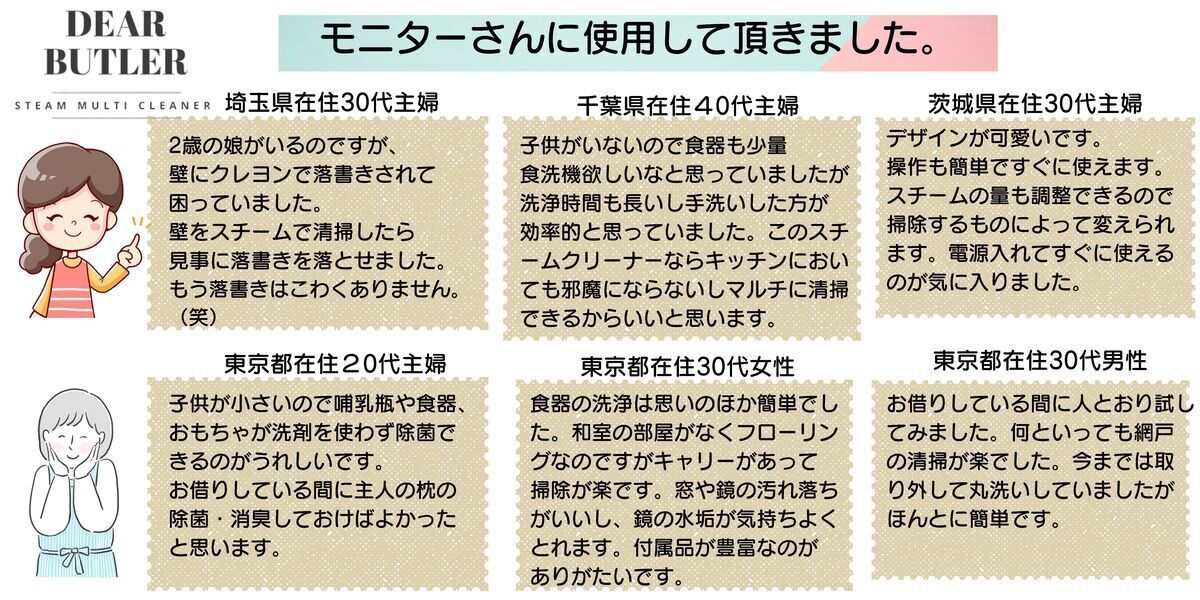 高圧スチームで食器はもちろん、ギトギト汚れのガスコンロやレンジフード、焦げつき汚れがついたフライパン、更には窓やガラス、網戸、ソファーや枕、ペット用別途の除菌・消臭にも。