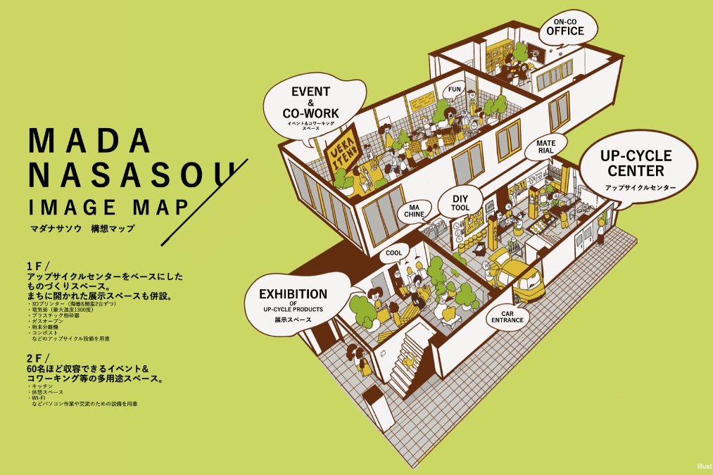 今回集まった資金は、1階を廃棄課題に向き合うアップサイクルセンター、2階をコワークする場にして、「まだなさそう」に向き合う・生み出す人たちが集まるイノベーション拠点として展開したいと考えております。