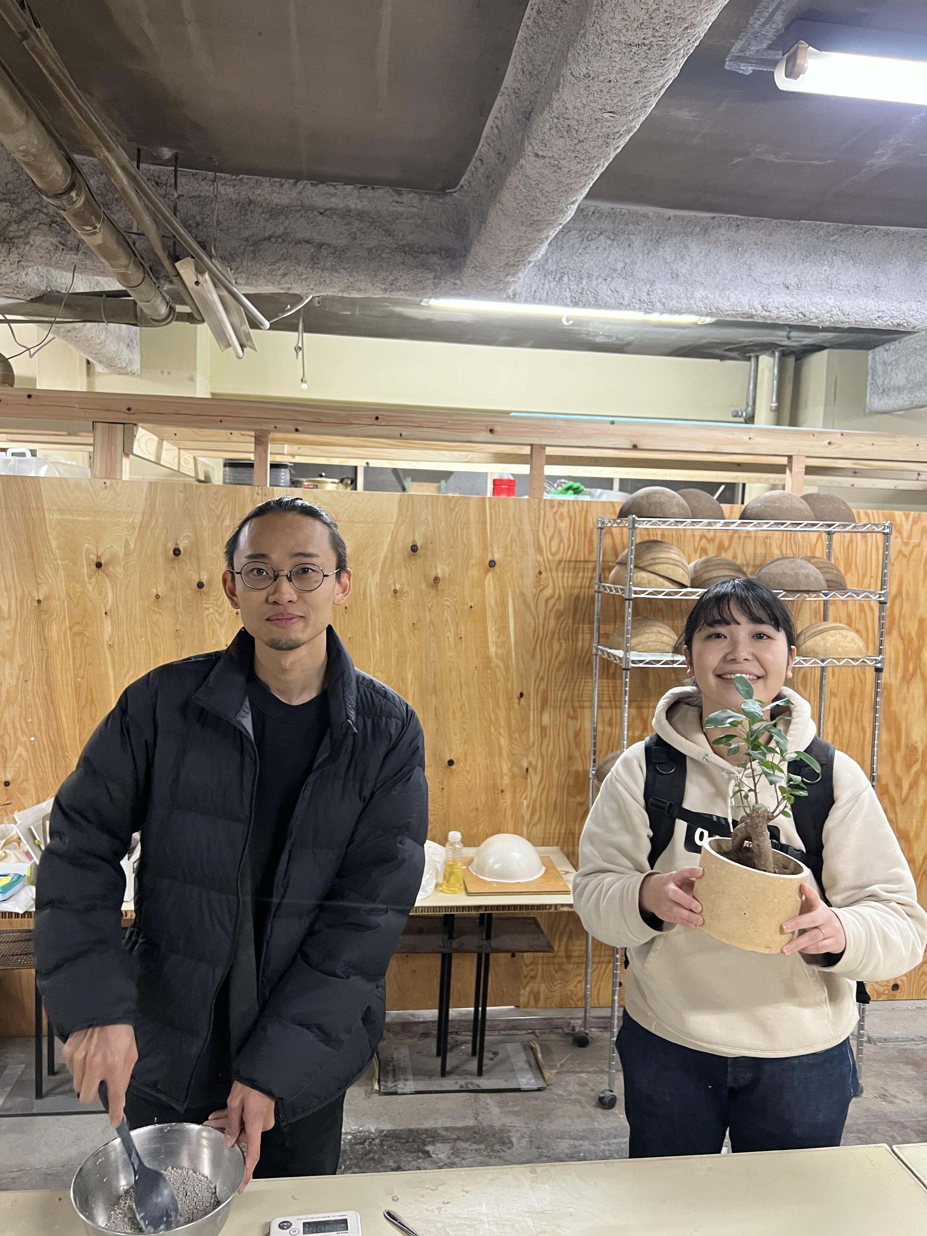 ↑奈良県で木材加工から生まれる木屑でモノづくりを行うキクズノヒトの田島さん