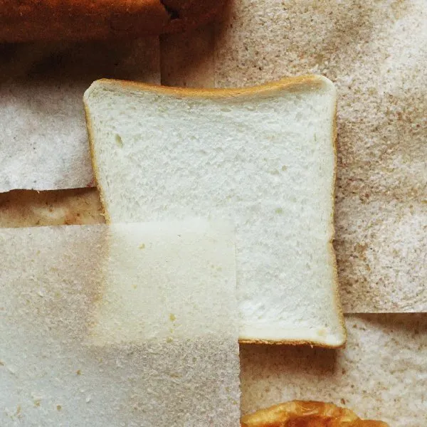 廃棄されるパンとパン屋さんの紙袋を使って、和紙のように漉いて制作。