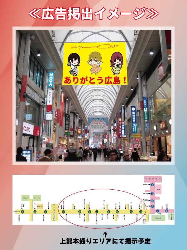 広島本通商店街にまなみのりさ特別アーケード幕を1基掲示します!!