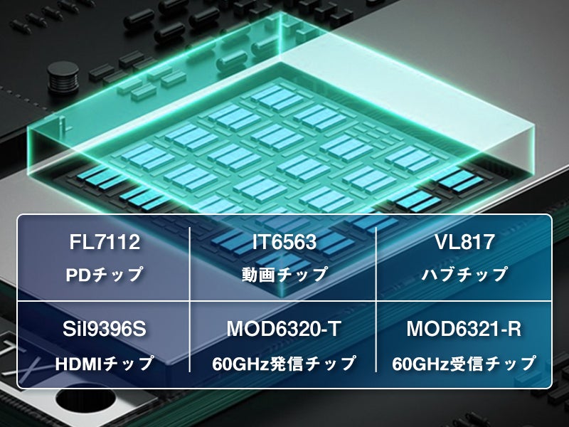 「Nebula Watcher」にはPDチップ、動画チップ、ハブチップ、HDMIチップ、60GHz発信と受信チップの6つ高性能チップを内蔵しております。超高速伝送を長い期間、安定して行うことができるようサポートしています。