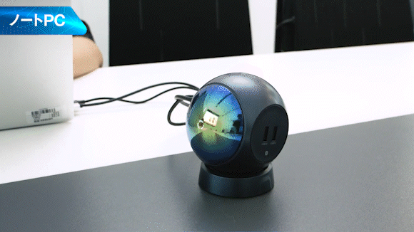 「Nebula Watcher」の性能面は従来品と比べて躍進しました。そして、外観もかつてない球形のデザインを採用しました。発信機と受信機は宇宙に存在する2つ美しい天体の様です。お互いを向き合わせると、超高速データ伝送をするとともに未来感の漂う眩い星雲光が輝き、空間を彩ります。