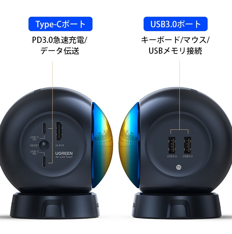 「Nebula Watcher」の発信機にはType-C×2とUSB3.0×2を備えています。ノートPCのUSBポート不足を解消でき、USBメモリや大容量なモバイルハードディスクを読み込むことができます。