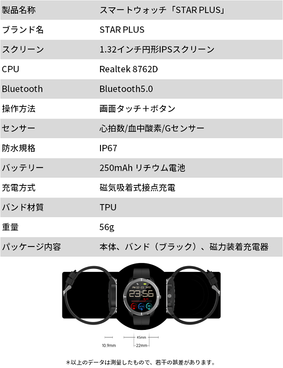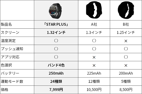 「STAR PLUS」はコロナ禍で誕生した新世代スマートウォッチです。24H温度測定ができ、様々な健康管理機能も搭載しています。アプリとの連携も簡単で、24種類のスポーツをモニタリングできます。