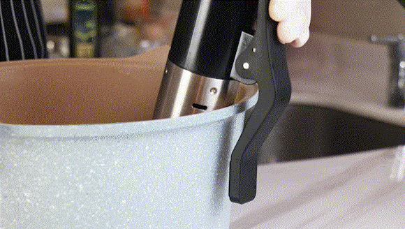 感電防止のため、鍋の中に手を入れて水温を測るのではなく、モニターに表示されている温度を見て温度を確かめてください。モニターの温度測定精度は±0.1℃ですのでご安心ください。