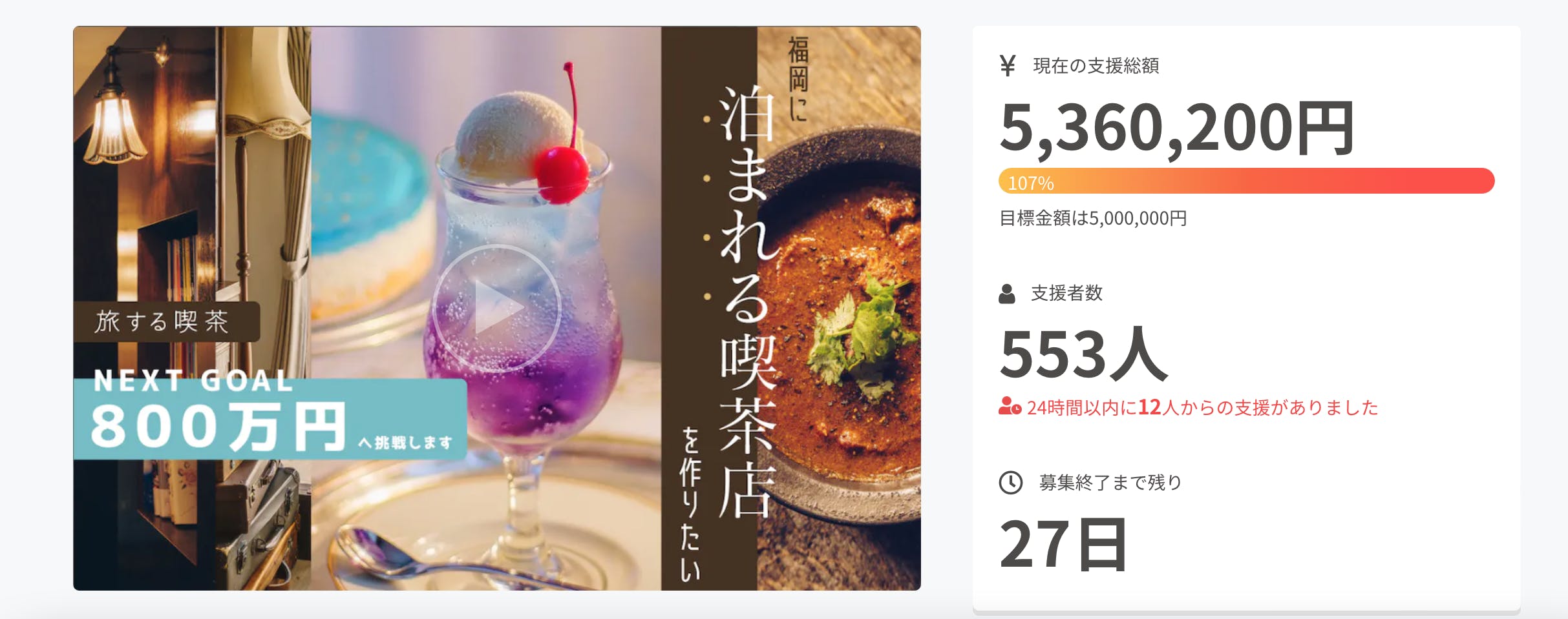 クラウドファンディング開始から12日目に、目標金額500万円を達成することができました。