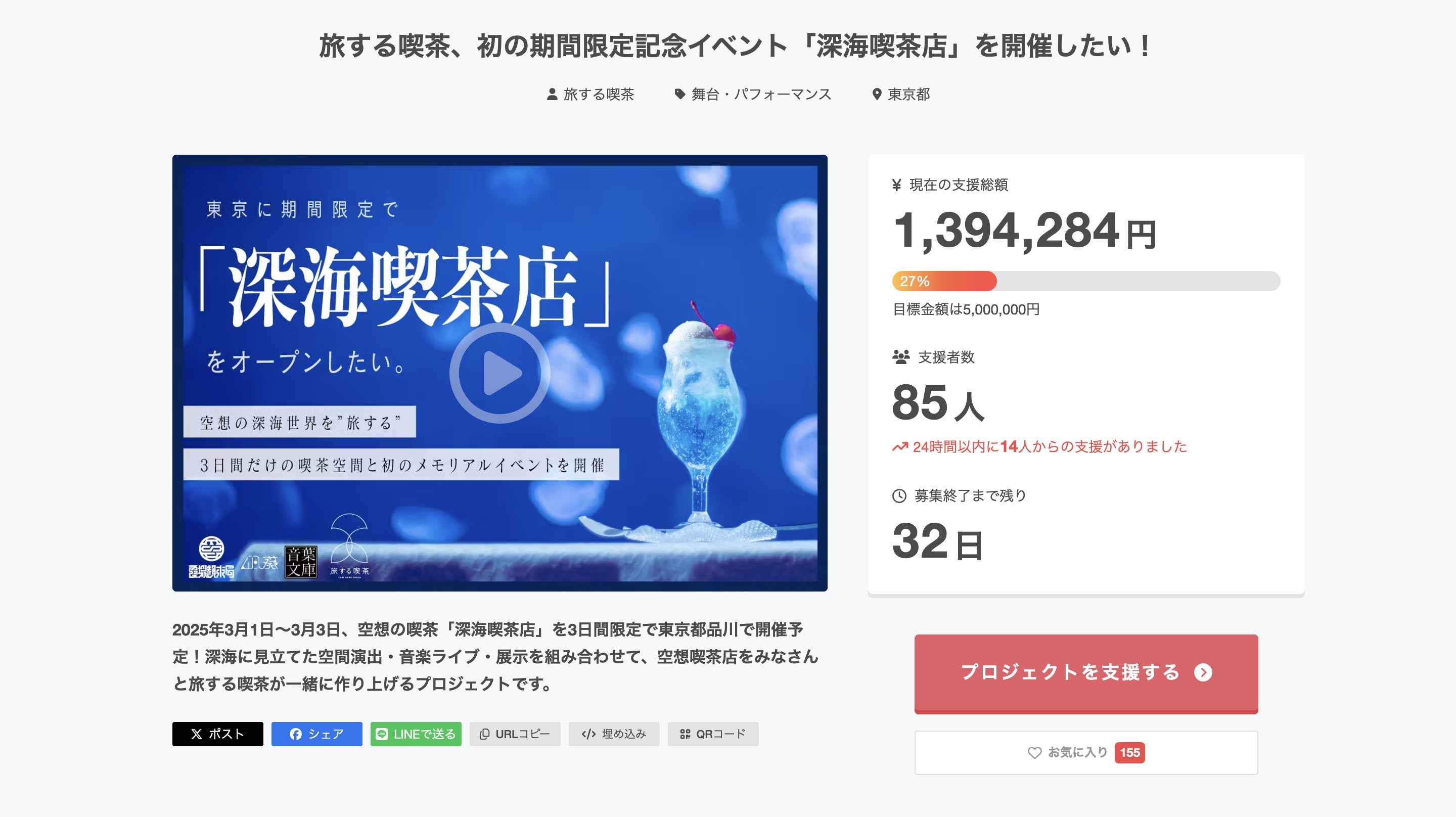 旅する喫茶初のイベント「深海喫茶店」クラファンページはこちら
