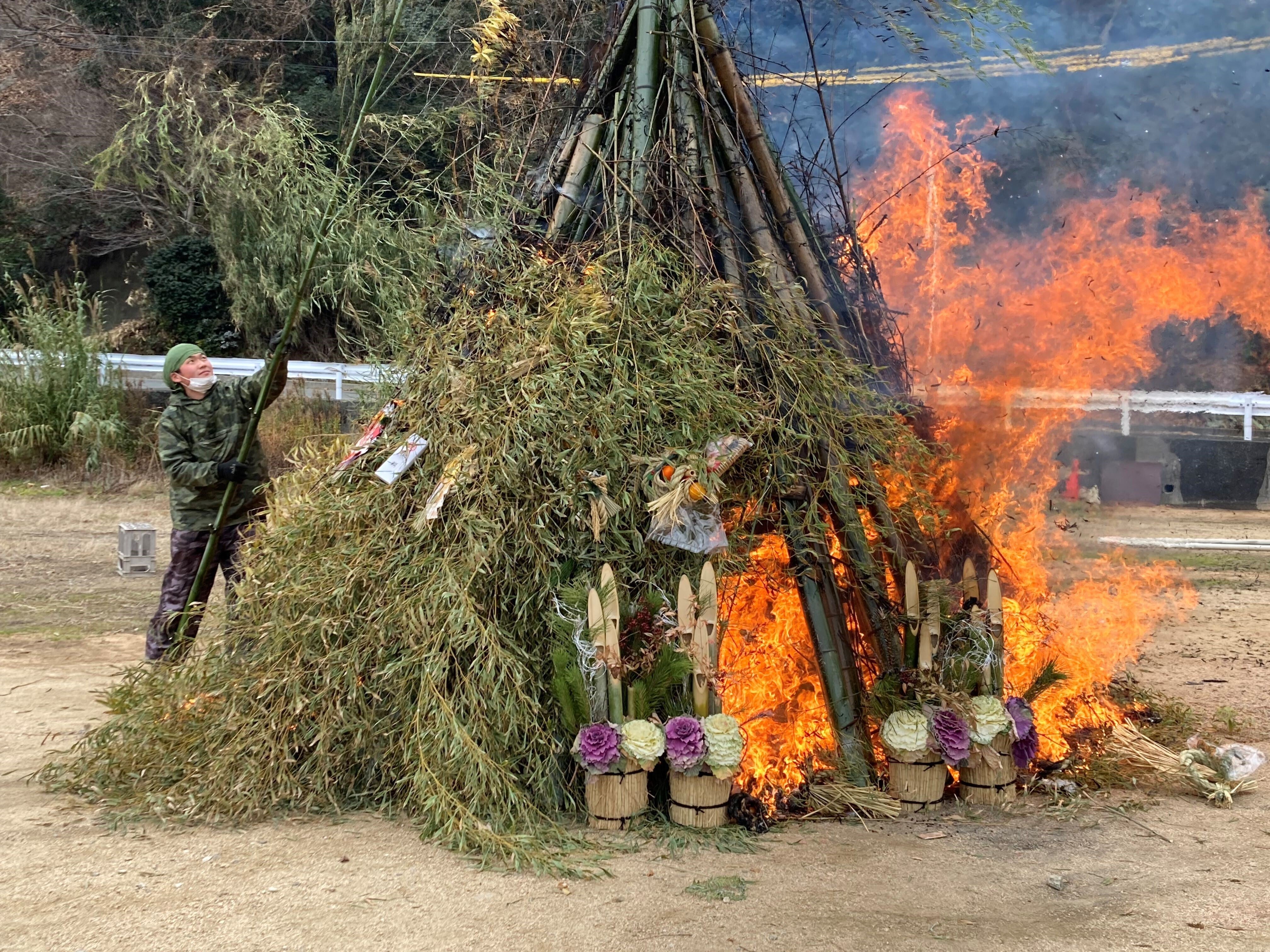 とんど祭りにお声がかかり参加しました。SDGs研修センターのテーマの一つである「山と海を繋ぐ」の一環で、瀬戸内海の島踵部を訪問していました。