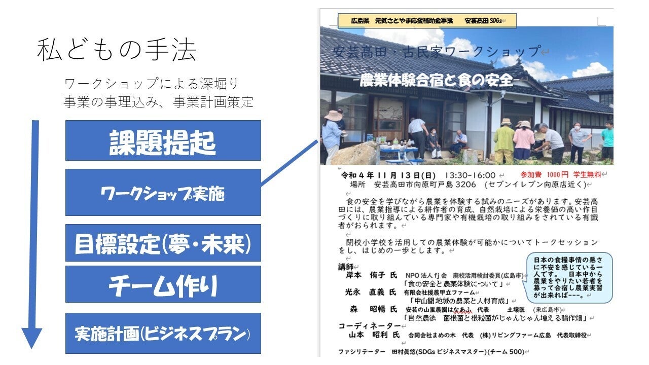 私たちの方法は、ワークショップによる深堀をし、繋ぎ、パートナーシップによるプロジェクトへというやり方です。