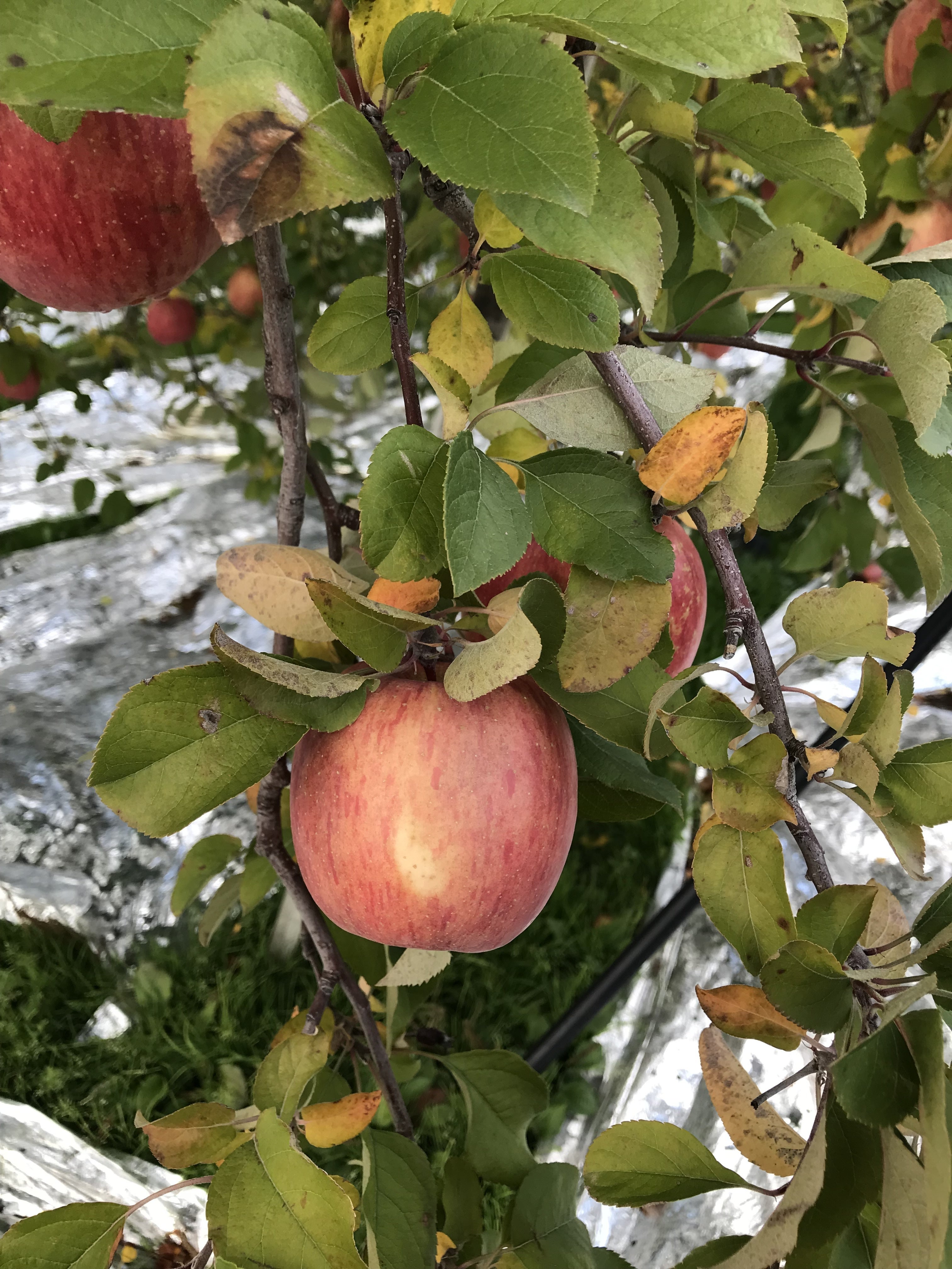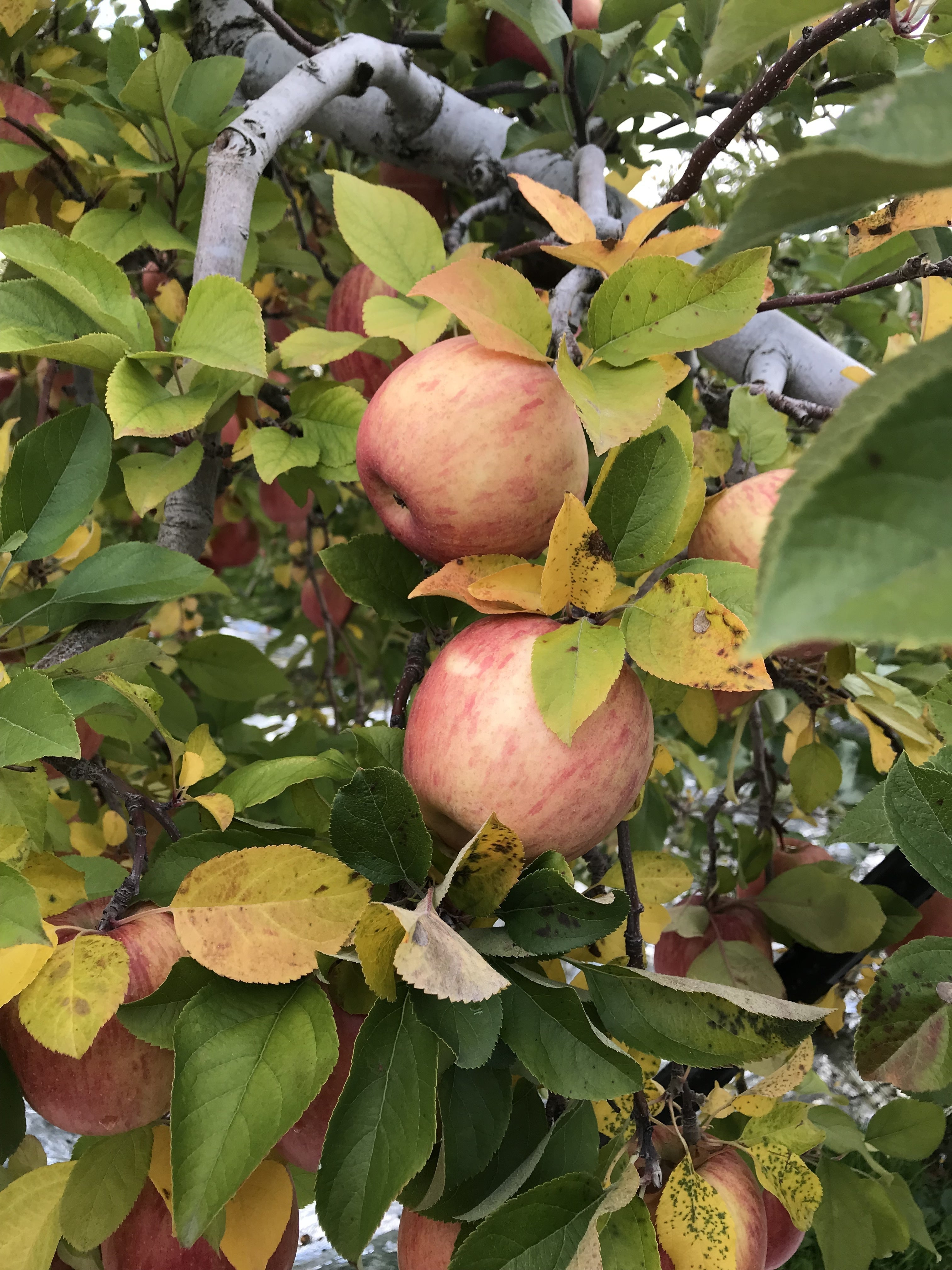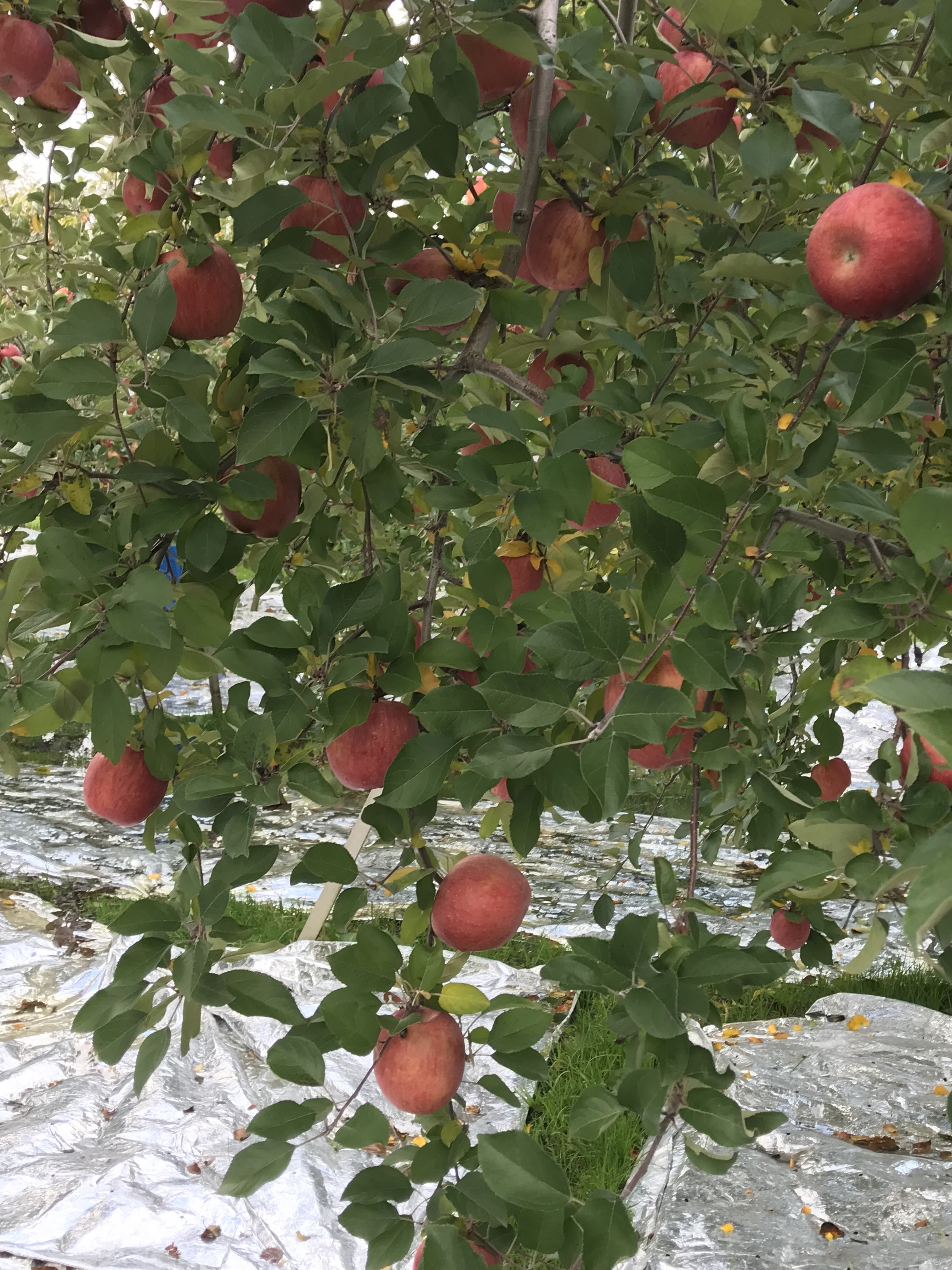 1日に来た時は、りんごの葉が青々としていたのに、この3日程で黄色く紅葉した葉がちらほら。最近の寒さで一気に葉が紅葉したようです。