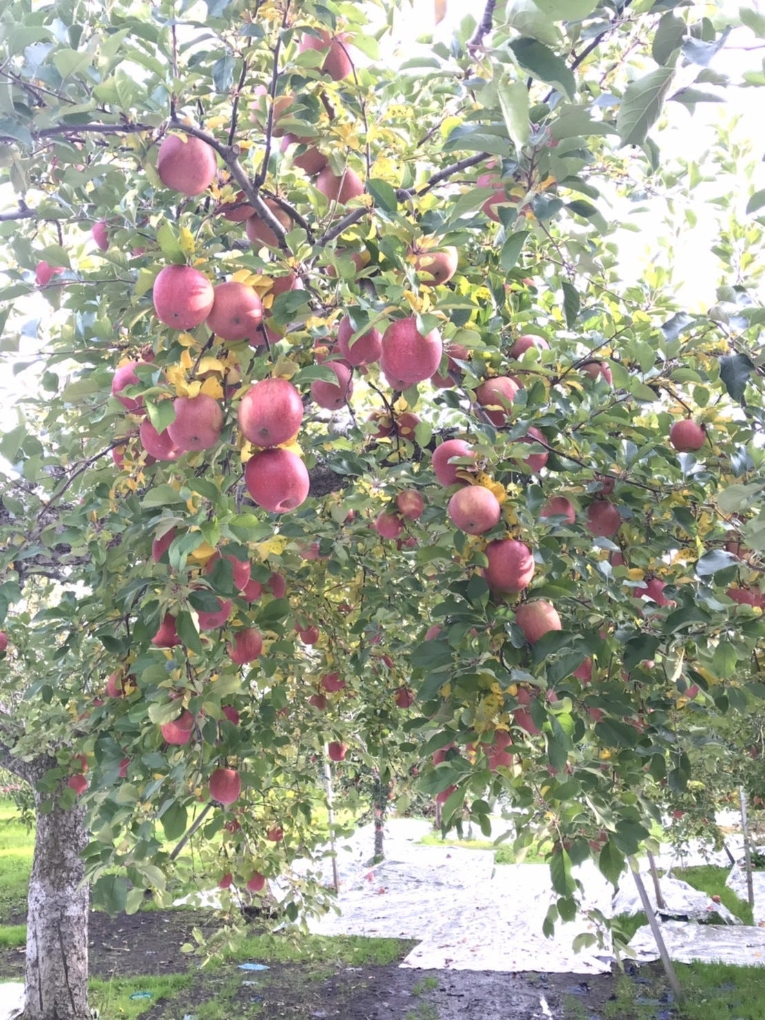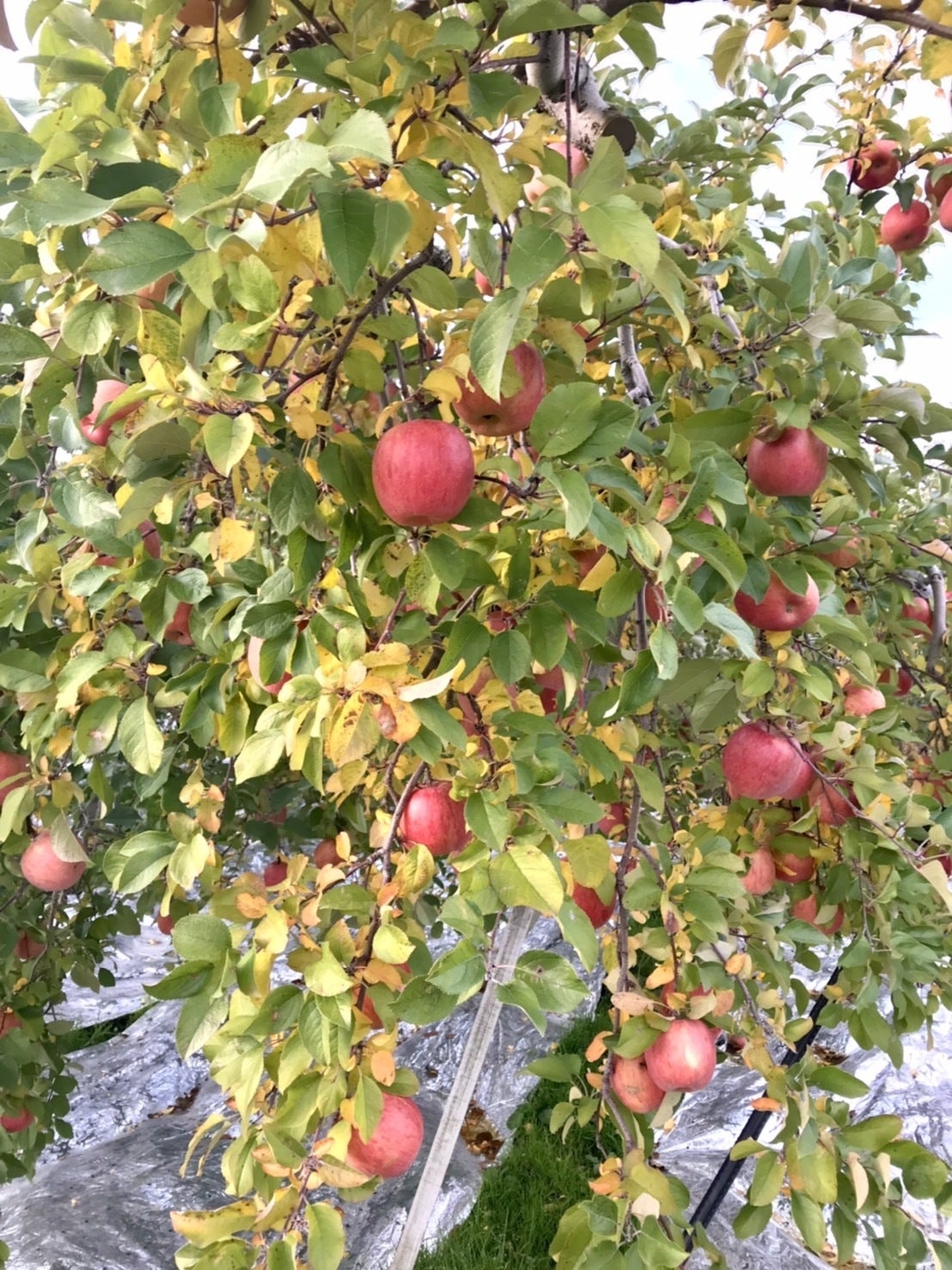 「葉とらずりんご」は、あまり赤くならないと思っていたのですが、結構真っ赤に色ついているりんごが多くて驚いています。