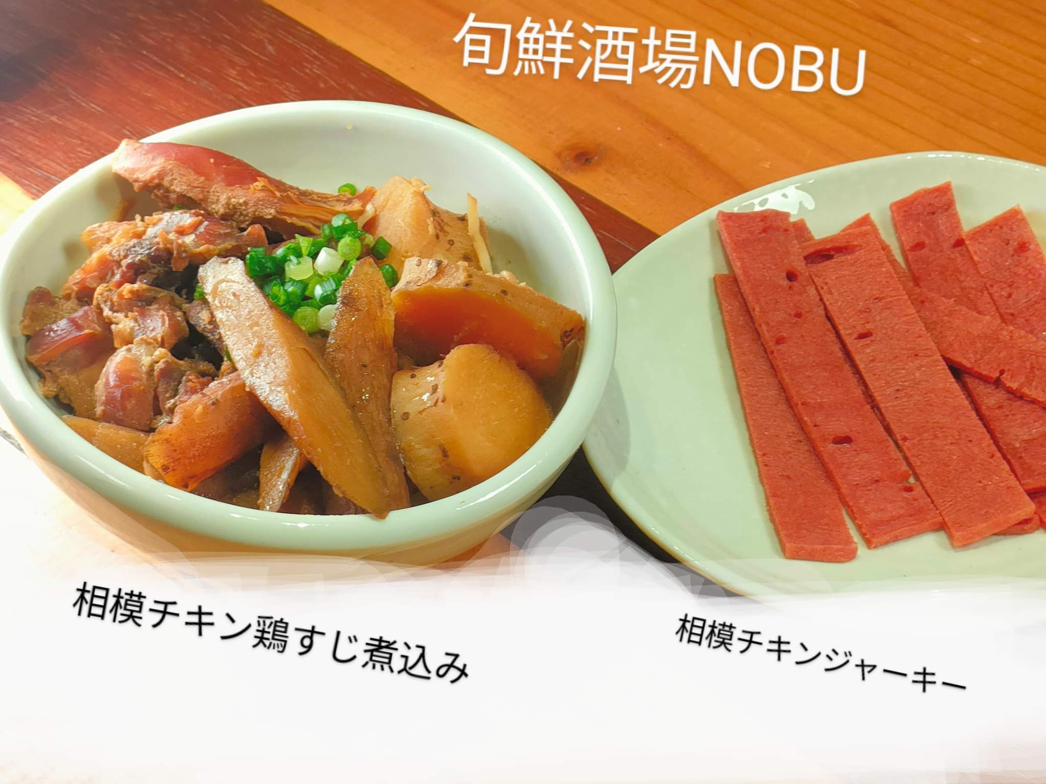 動画では3分30秒あたりから相模チキンの鶏すじ煮込みを紹介しています↓