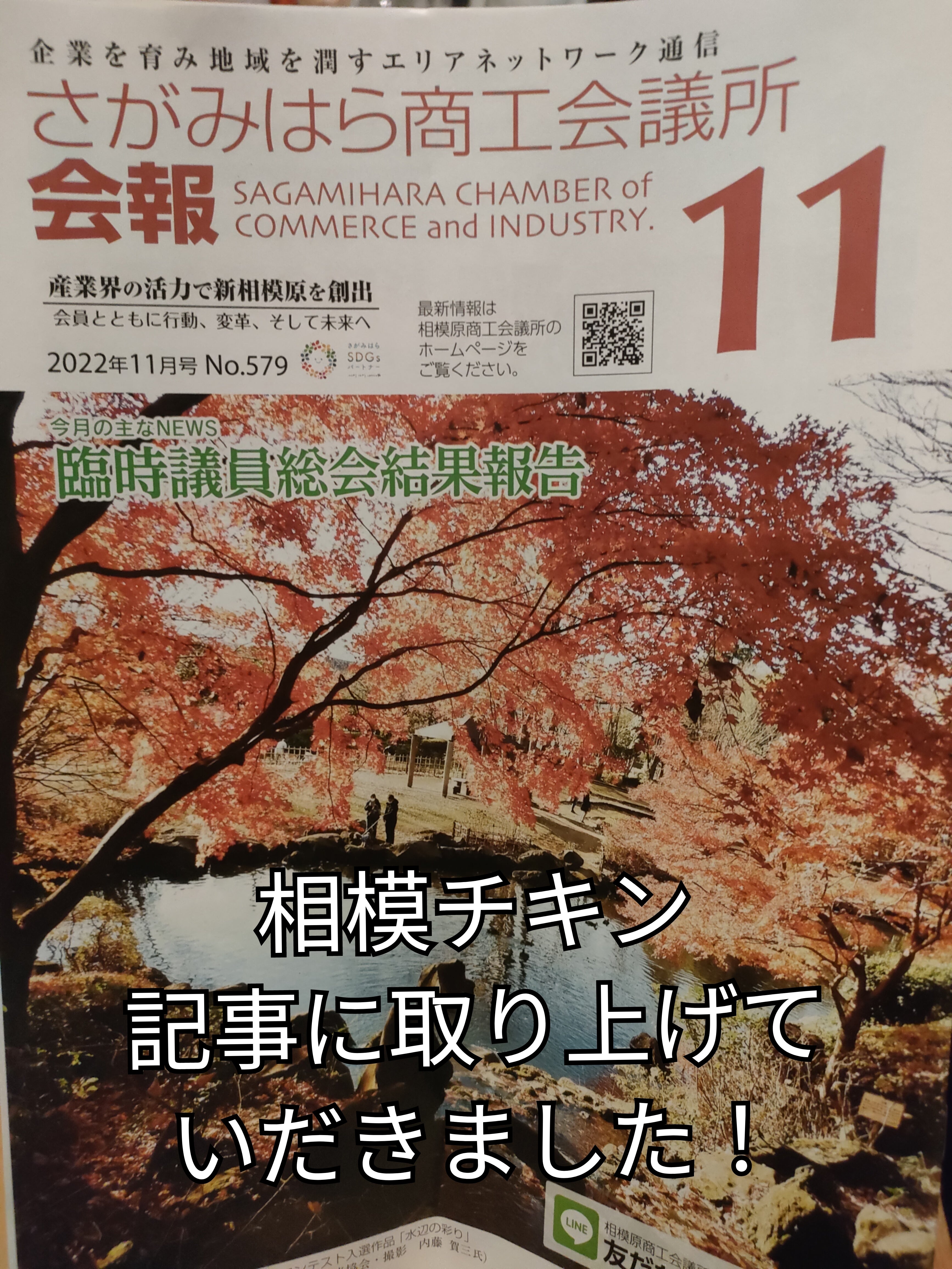 2022/11/18 17:04#さがみはら商工会議所 会報にて 相模原の新しいSDGs名物 #相模チキン が取り上げれました!ありがとうございます!クラウドファンディング本日〆切となります!宜しくお願いいたしますm(_ _)m#旬鮮酒場nobu#第18回相模原お店大賞#相模原の新しい名物#相模チキンプロジェクト#相模原に新しい名物を作ろう#おださが #小田急相模原#相模原市 #サウザンロード#相模原市商店連合会#相模原お店大賞受賞店プロデュース #廃鶏 #フードロス解消 #sdgs #美味しい もっと見る