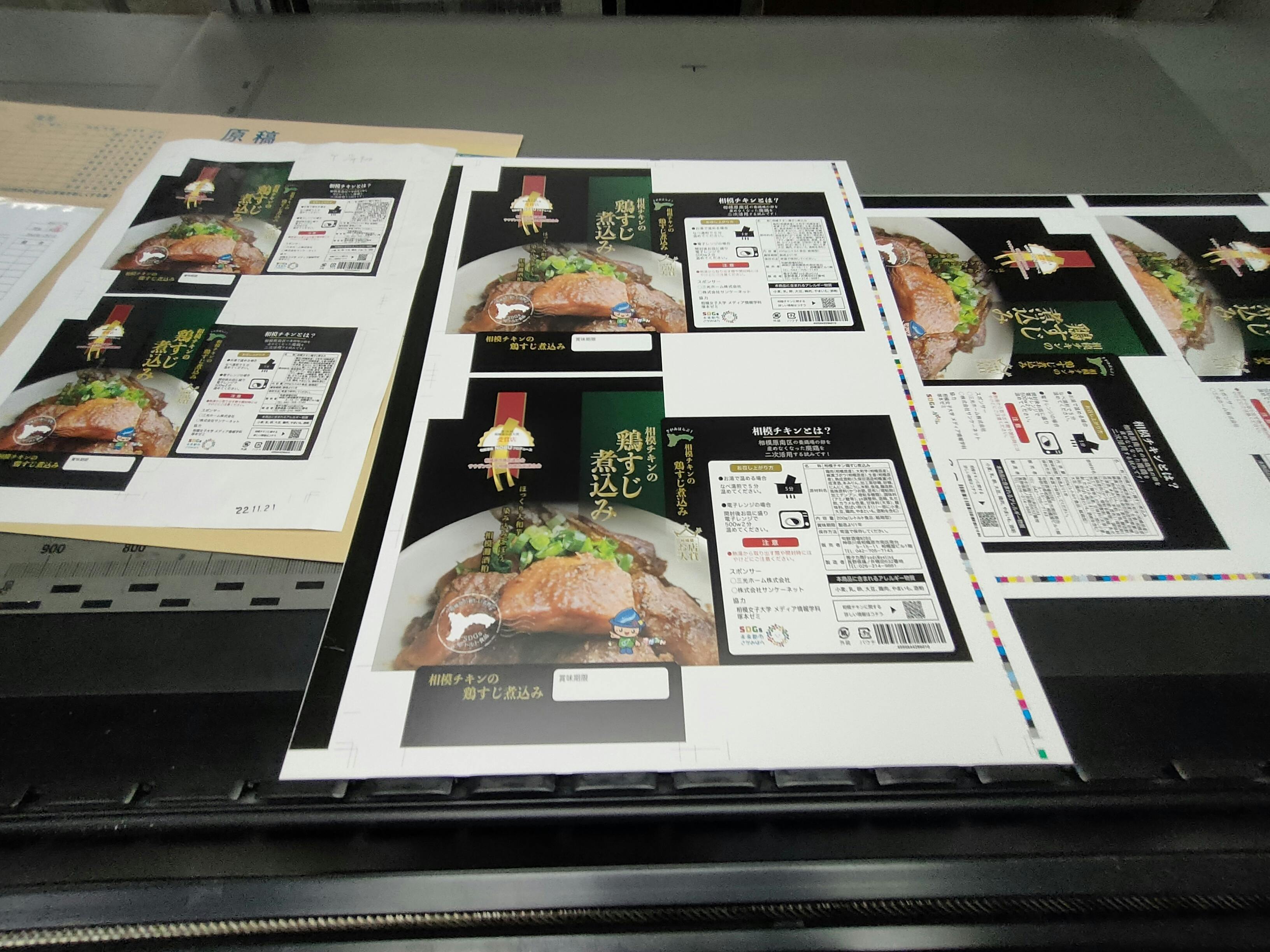 本日相模チキン鶏すじ煮込みパッケージ印刷工場へ!