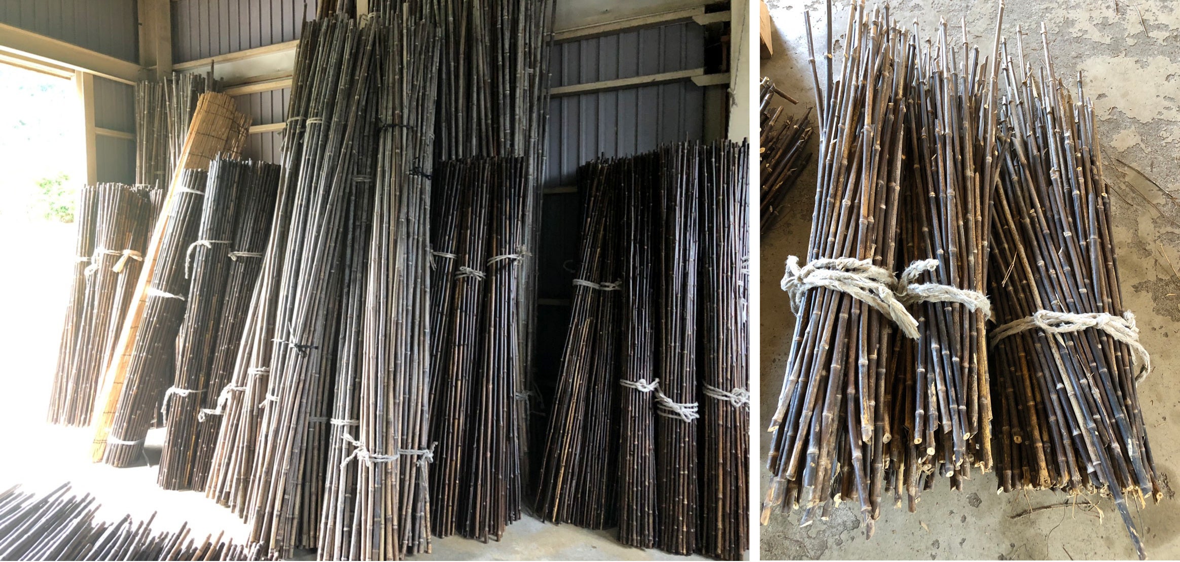 この地で最盛期は7軒の企業(事業所)があり、約100軒の方々が、何らかの形で黒竹産業に関わっていましたが、代表者の高齢化や獣害、竹特有の病気の被害による収穫量の減少問題などから廃業が相次ぎ、結果的に残された一軒として当社がこの黒竹産業と文化を守っている状況です。