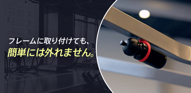 【GYMBUTLER】はジムマシンのスチールフレームに自在に装着できるドリンクホルダーです。