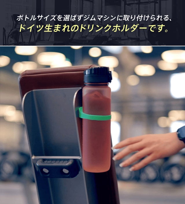 【GYMBUTLER】はボトルサイズを選ばずジムマシンに取り付けられる、ドイツ生まれのドリンクホルダーです。
