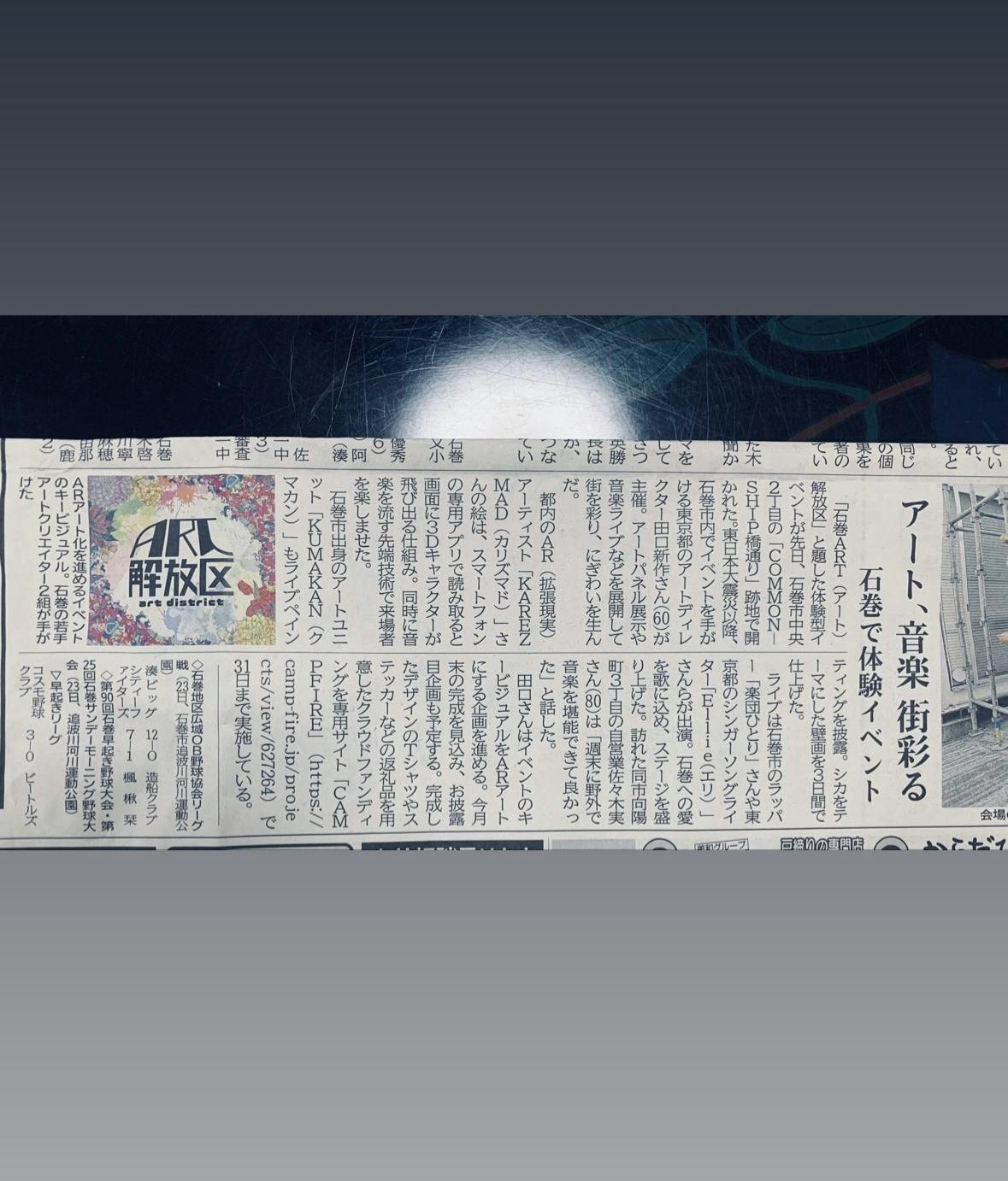 石巻かほく新聞に記事が掲載されました