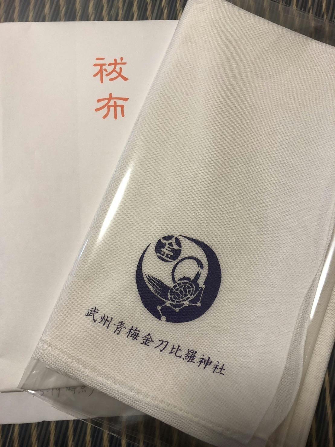 ロゴには玄武と月、北斗七星、そして金刀比羅様の「金」の文字が、まるでひとつに一体化し円を描くような、たくさんの方たちのご縁で成り立っているこんぴら様らしいロゴとなっております。首元に巻いたり、入浴時の洗体等にご使用ください。