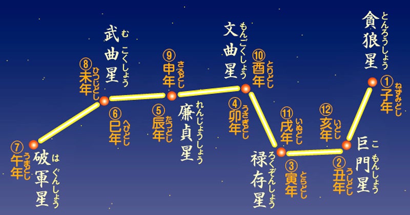 北斗七星のそれぞれの星は、十二支に対応しております。