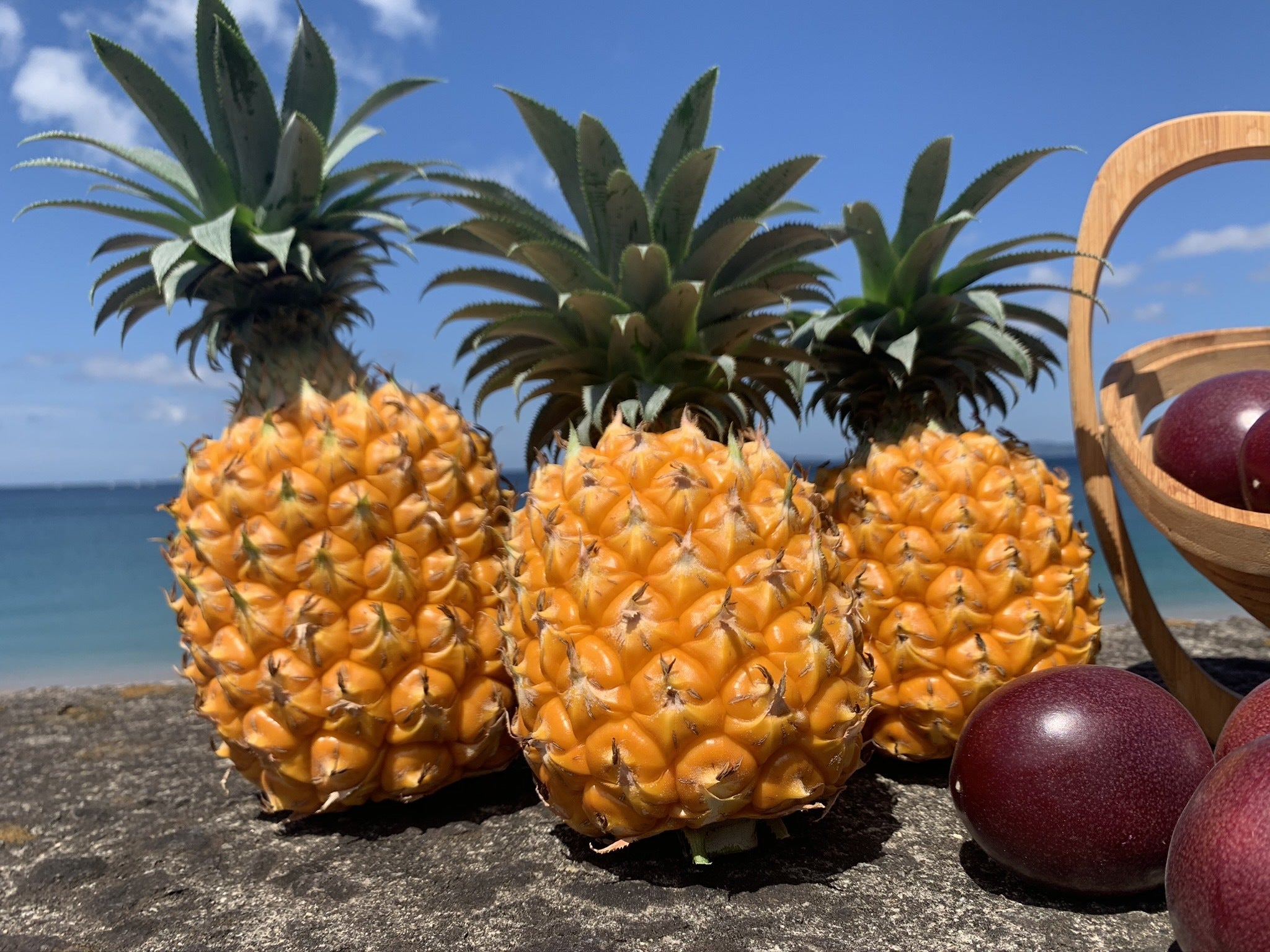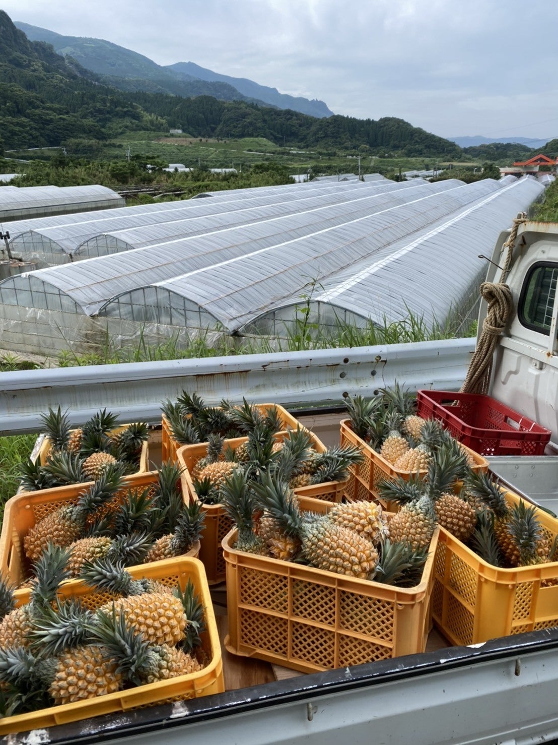 食べてみて、その美味しさにびっくりし、私達も南大隅町の温暖な気候の中で完熟のパイナップルを育てる事を決め、今現在も日々奮闘しているところです。