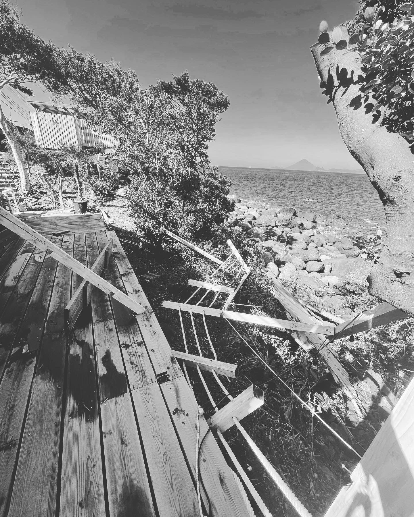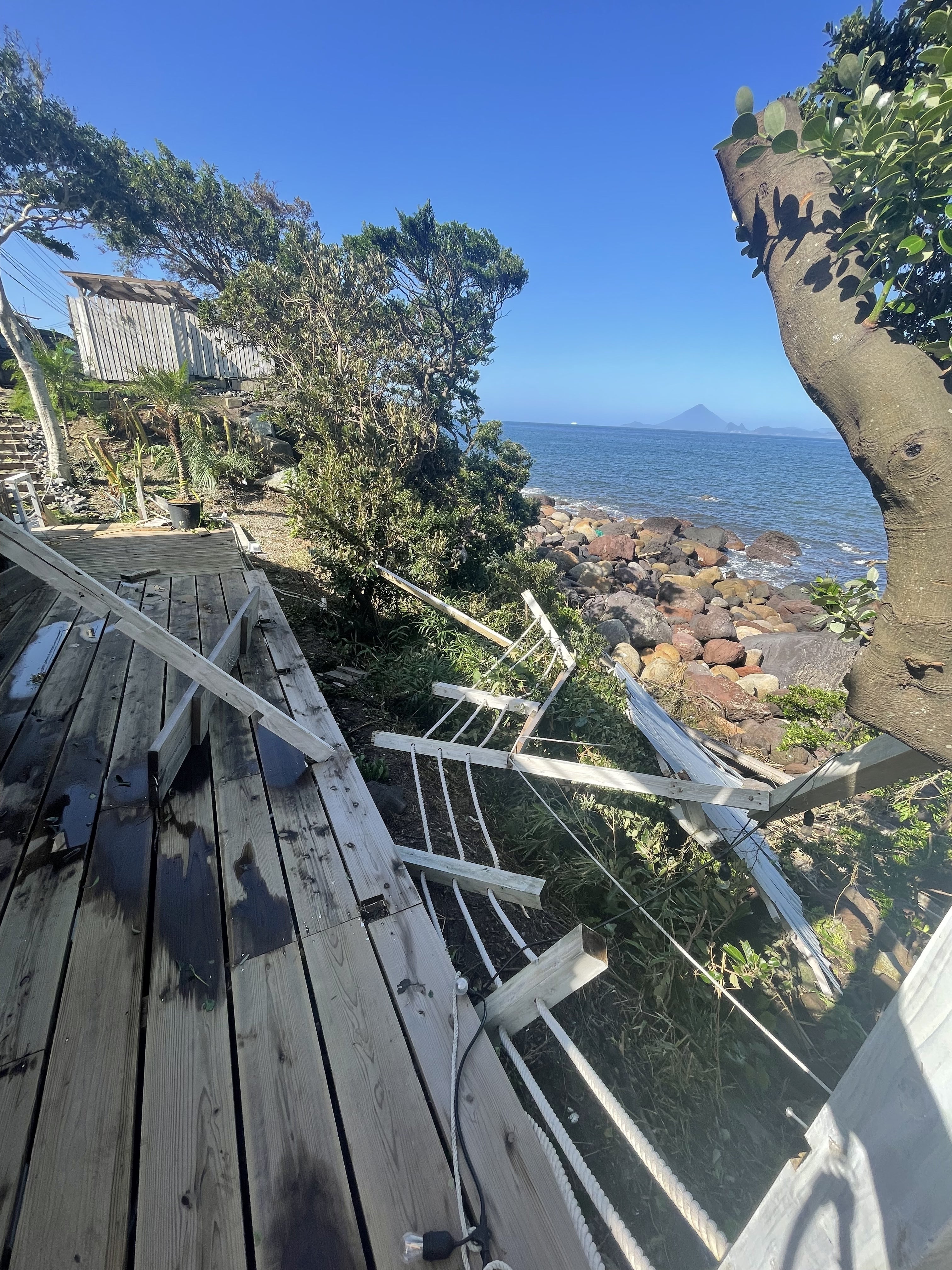 台風直撃によりcafeの前のテラスが吹き飛ばされてしまいました。