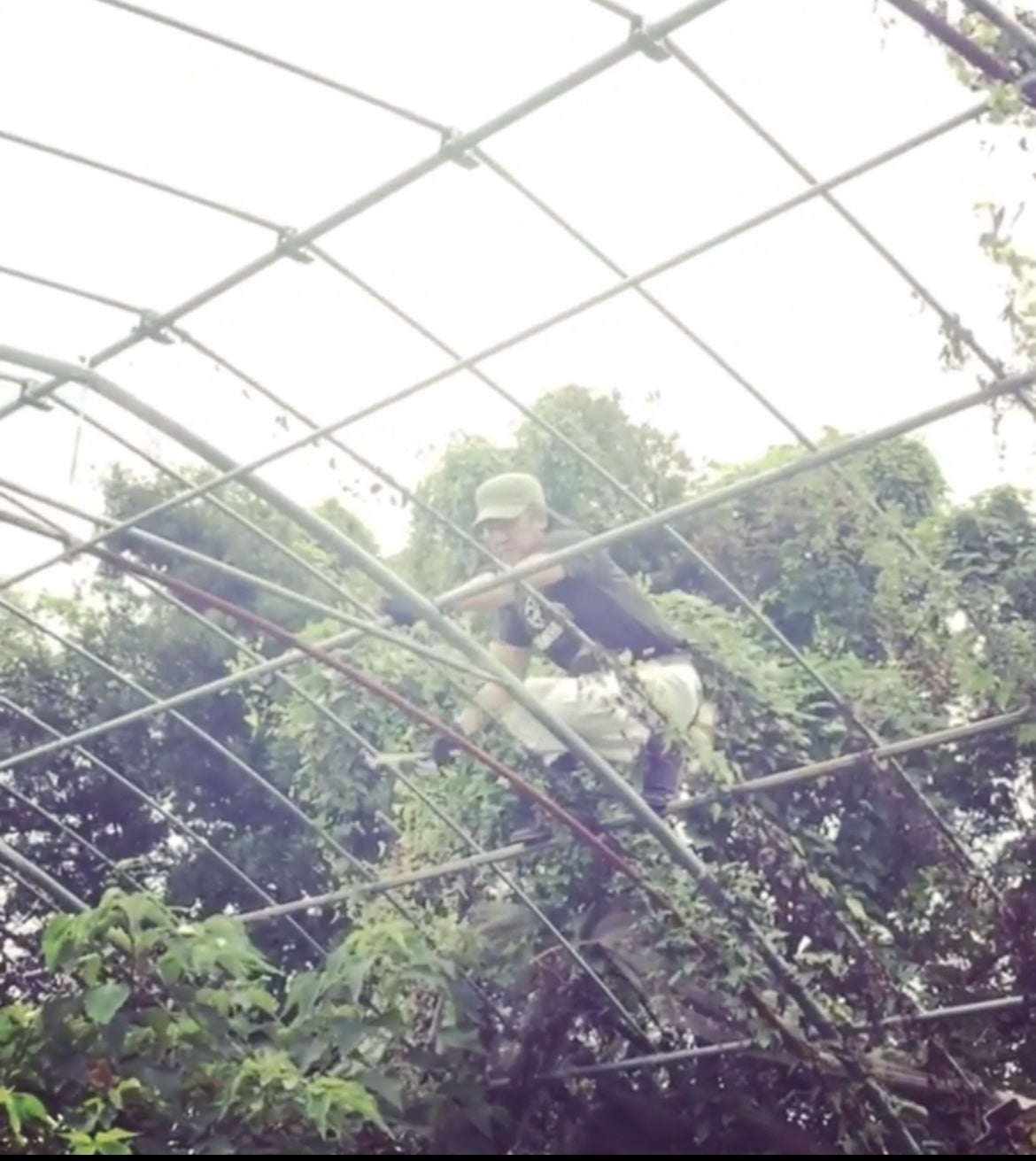 ↑↑鹿児島県の大崎町にあった中古のハウスの上に上がり、一人で一つづつ部品を外していく気が遠くなりそうな炎天下での作業の日々でした。