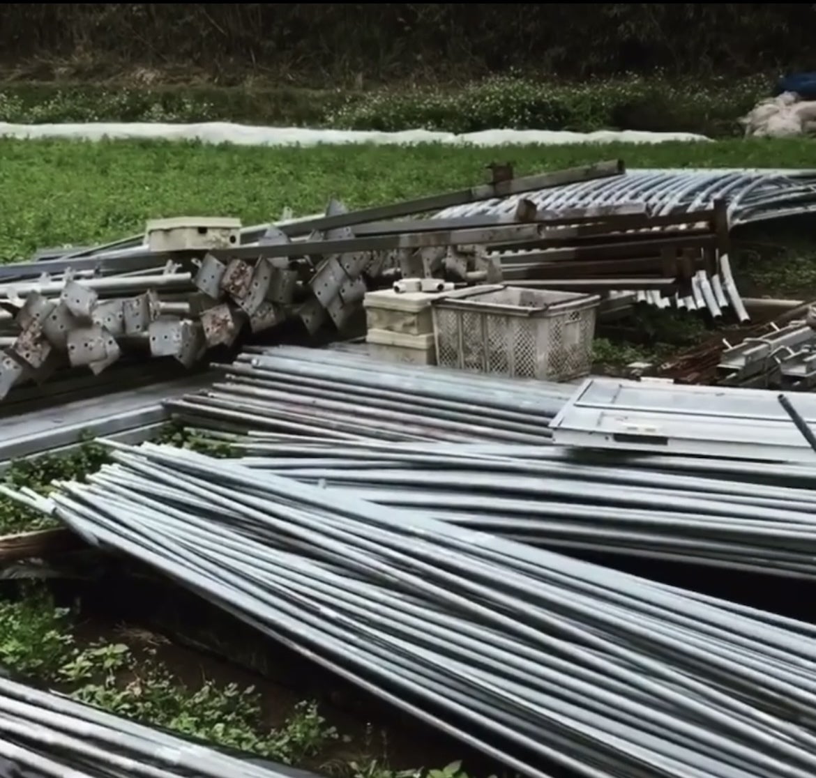 そちらのスペースも木などが当たって、柱が折れ屋根が弾き跳んでしまいました。