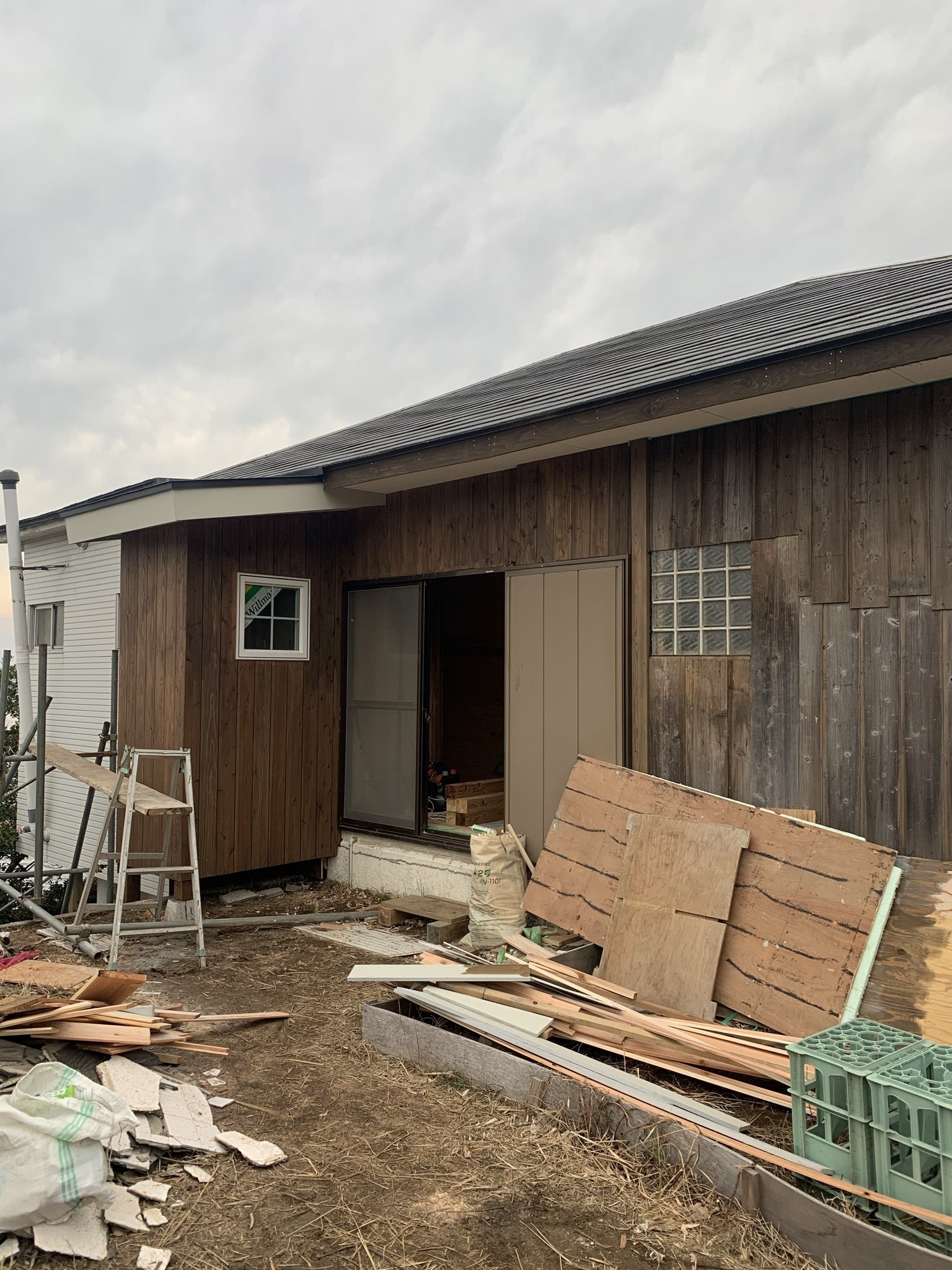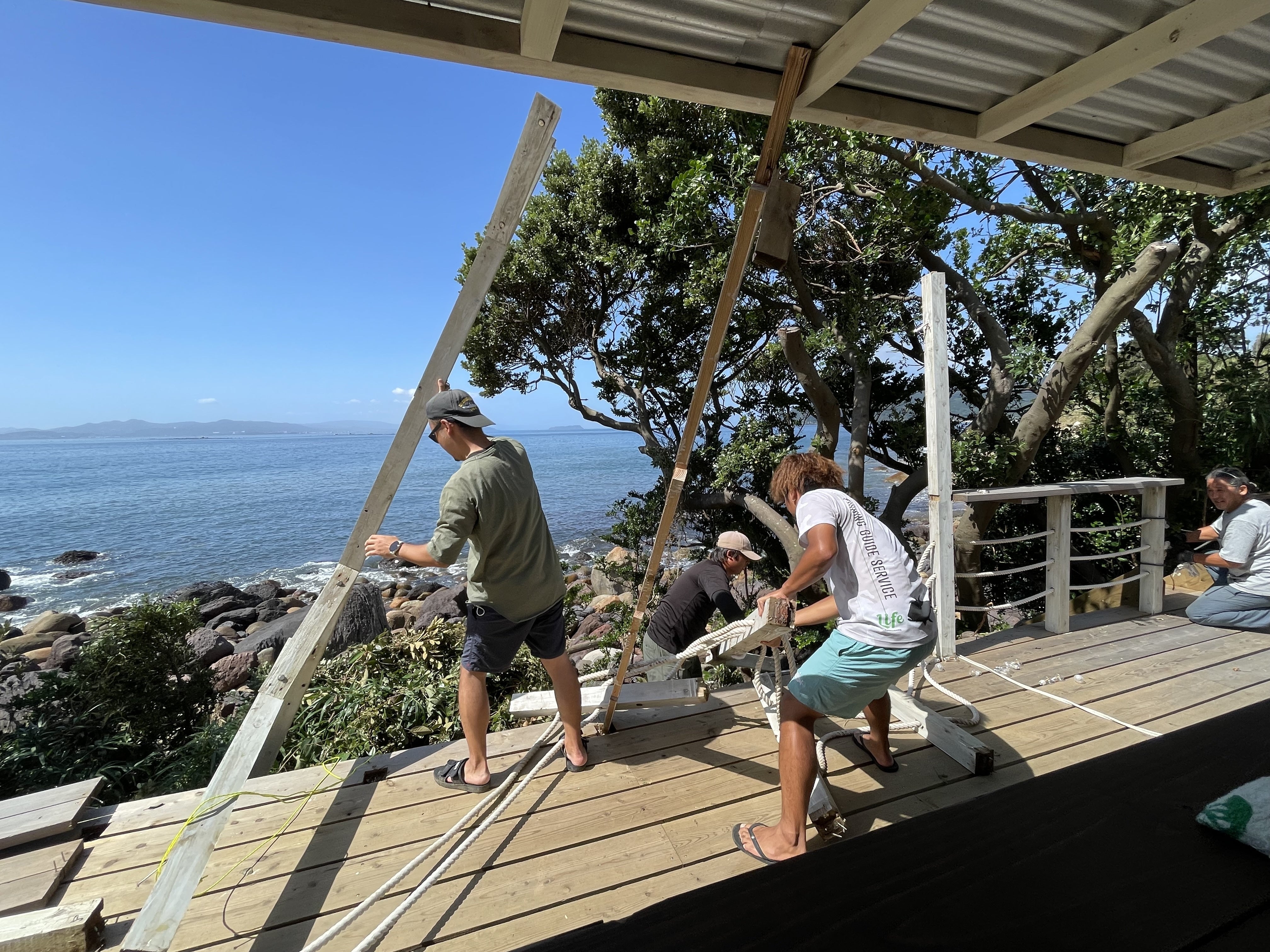 壊れたものや海や他の場所へ飛んでいってしまった廃材の撤去や解体をしに、すぐに駆けつけてくれた友人達↓