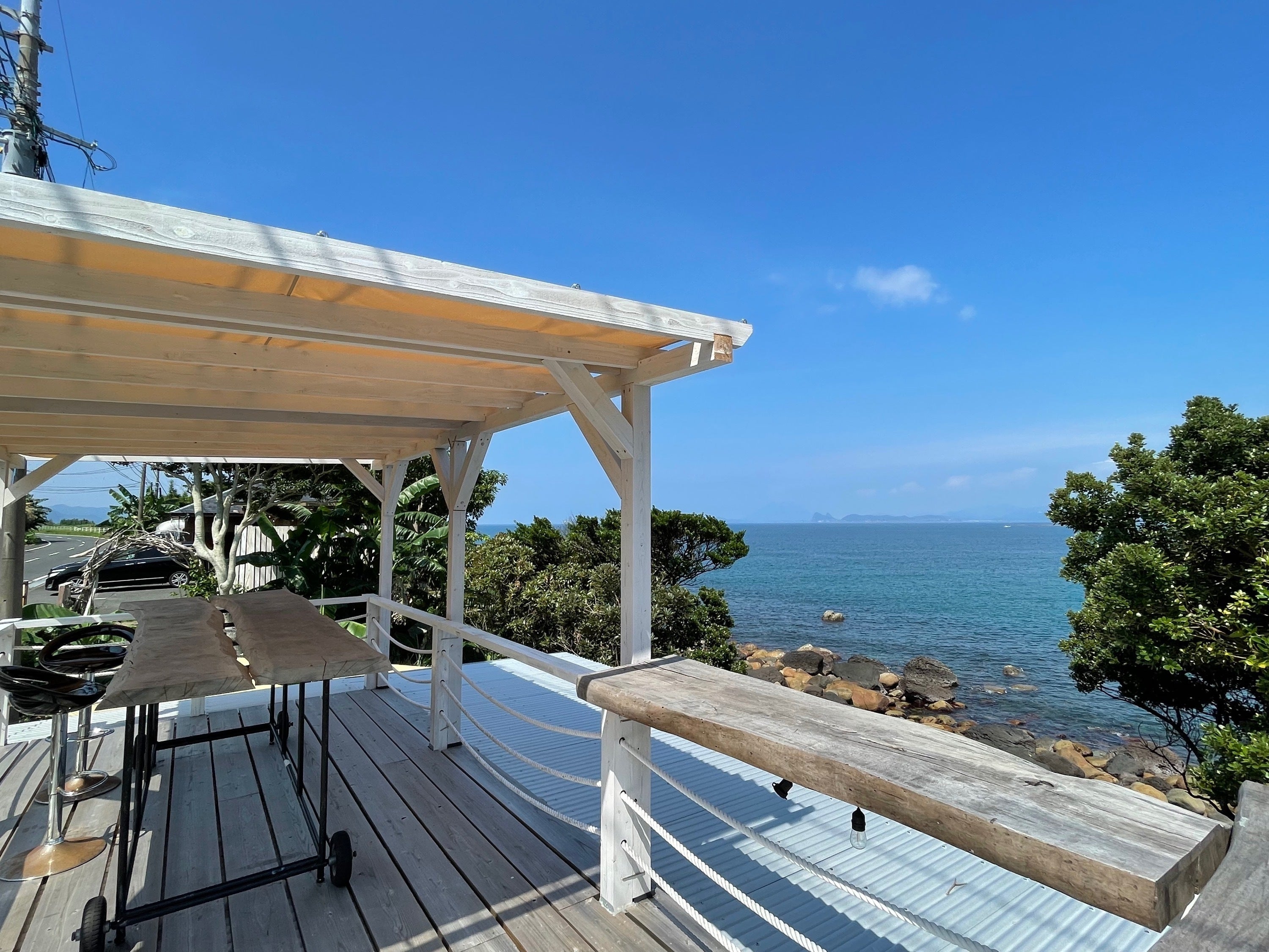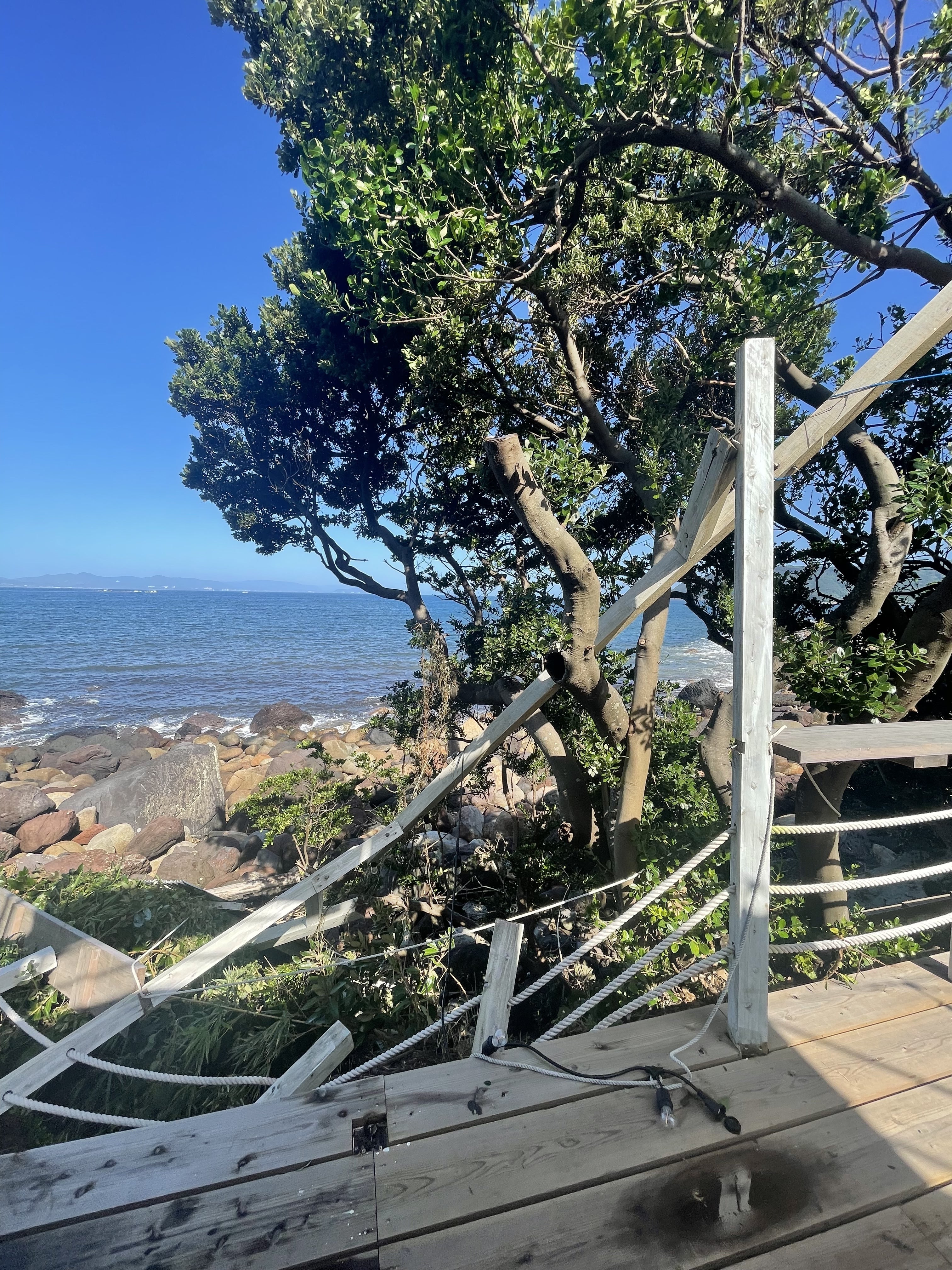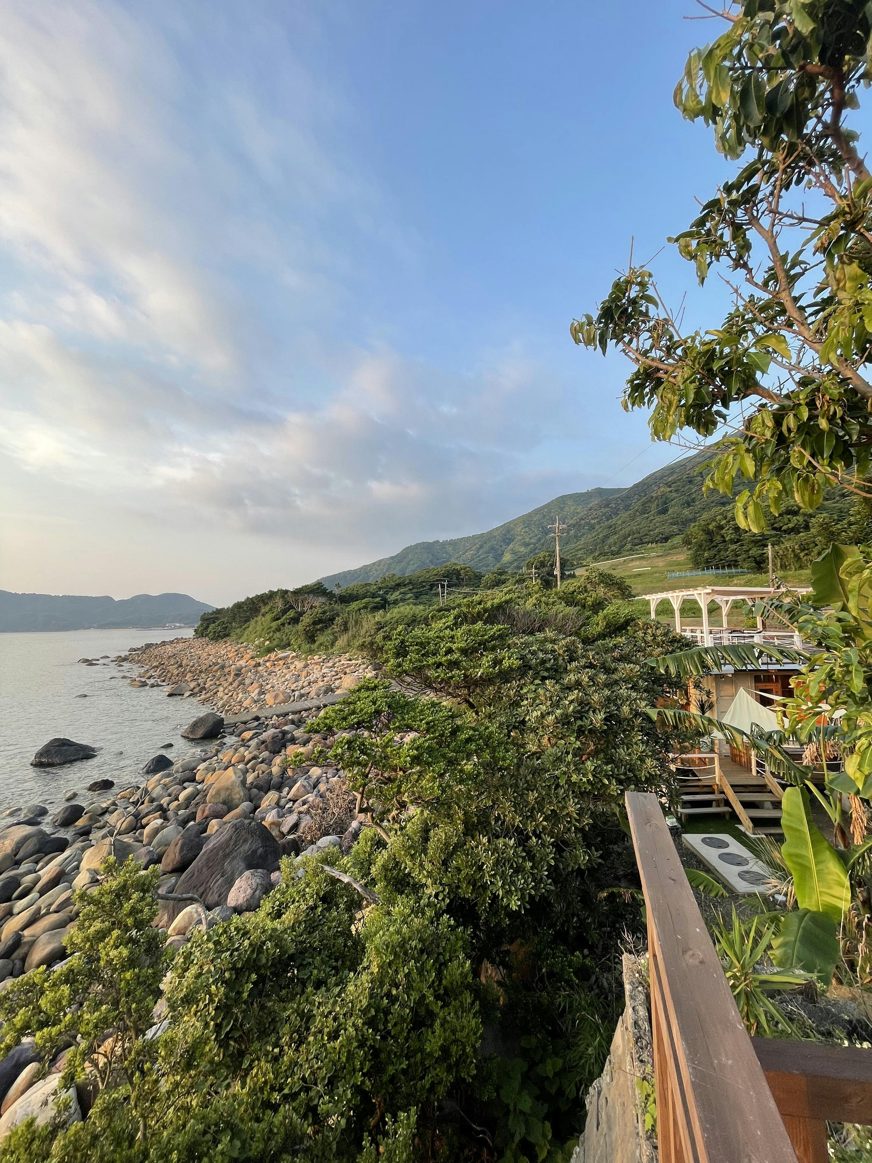 カフェとゲストハウスが建つ海沿いの立地↓↓