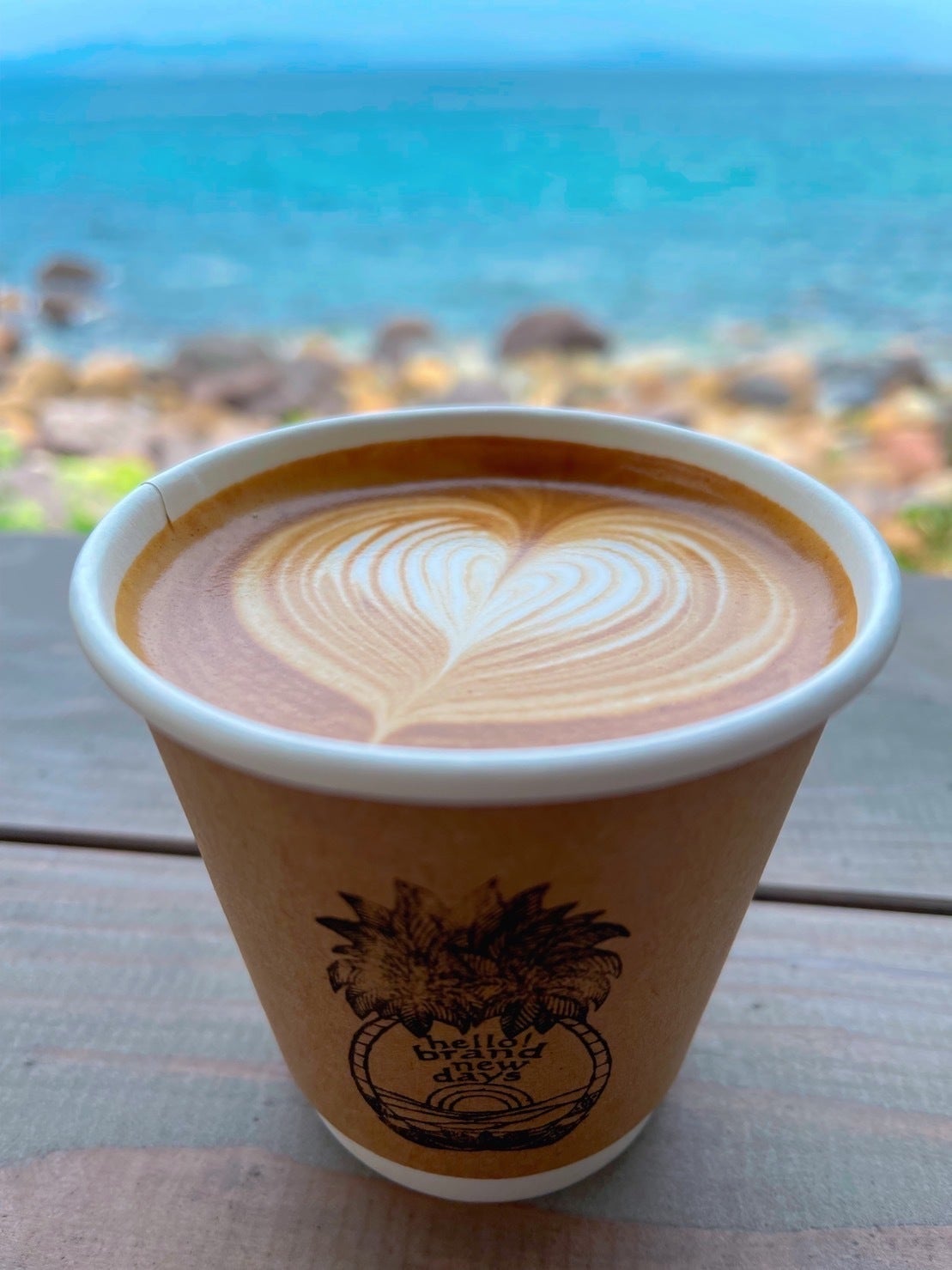 店の前の道路は本土最南端の佐多岬、雄川の滝などの観光地など、気持ちのいい海沿いの道をドライブされる方が多いので、ドライブがてらにゆっくり飲んでいただける様にと、ドリンクのサイズが大きいのも、こだわりのひとつです。
