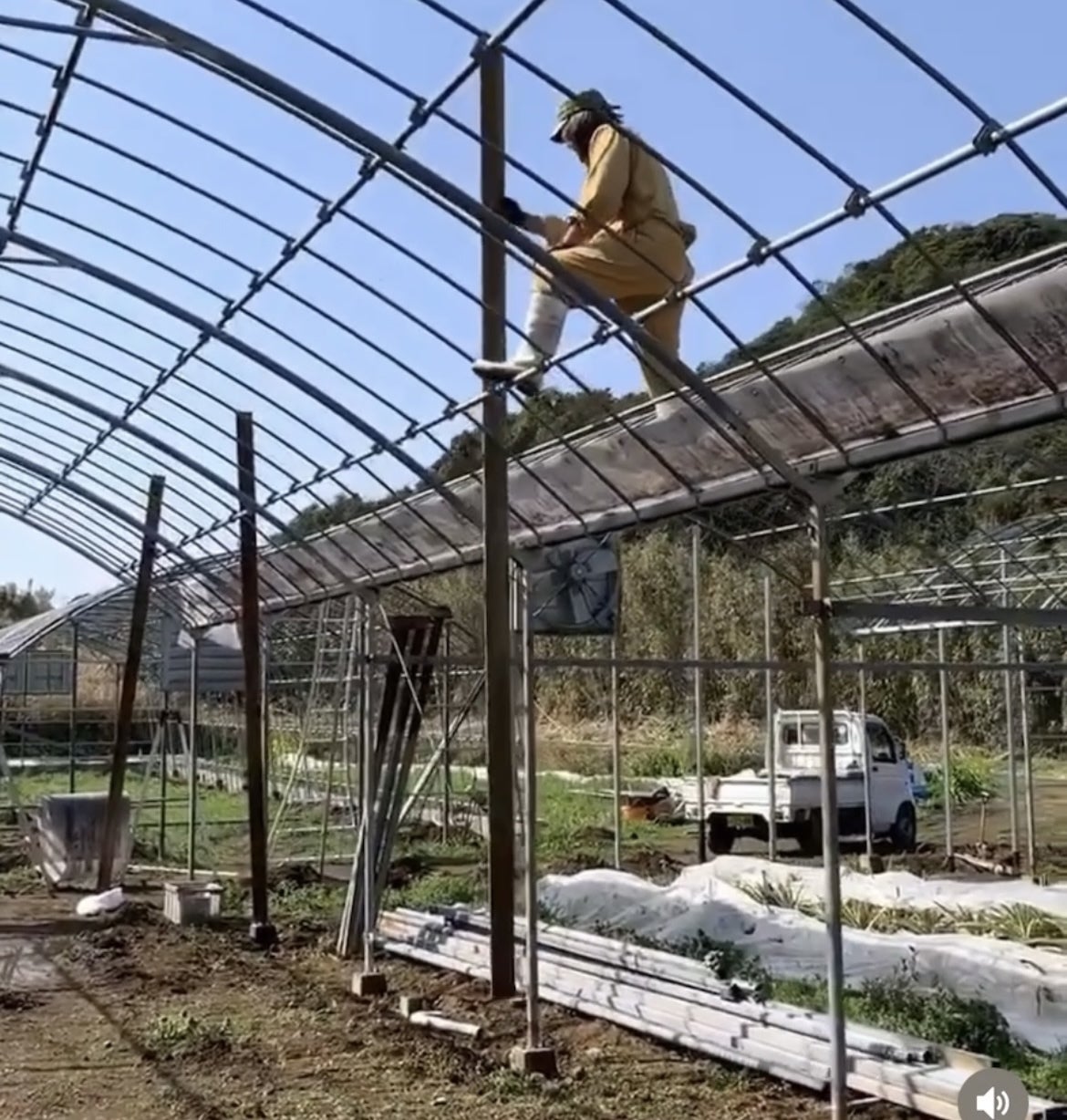 移住をして始めたパイナップルの生産は一年目は土地を見つけ、中古のビニールハウスを購入し、それを自ら解体するところから始まりました。