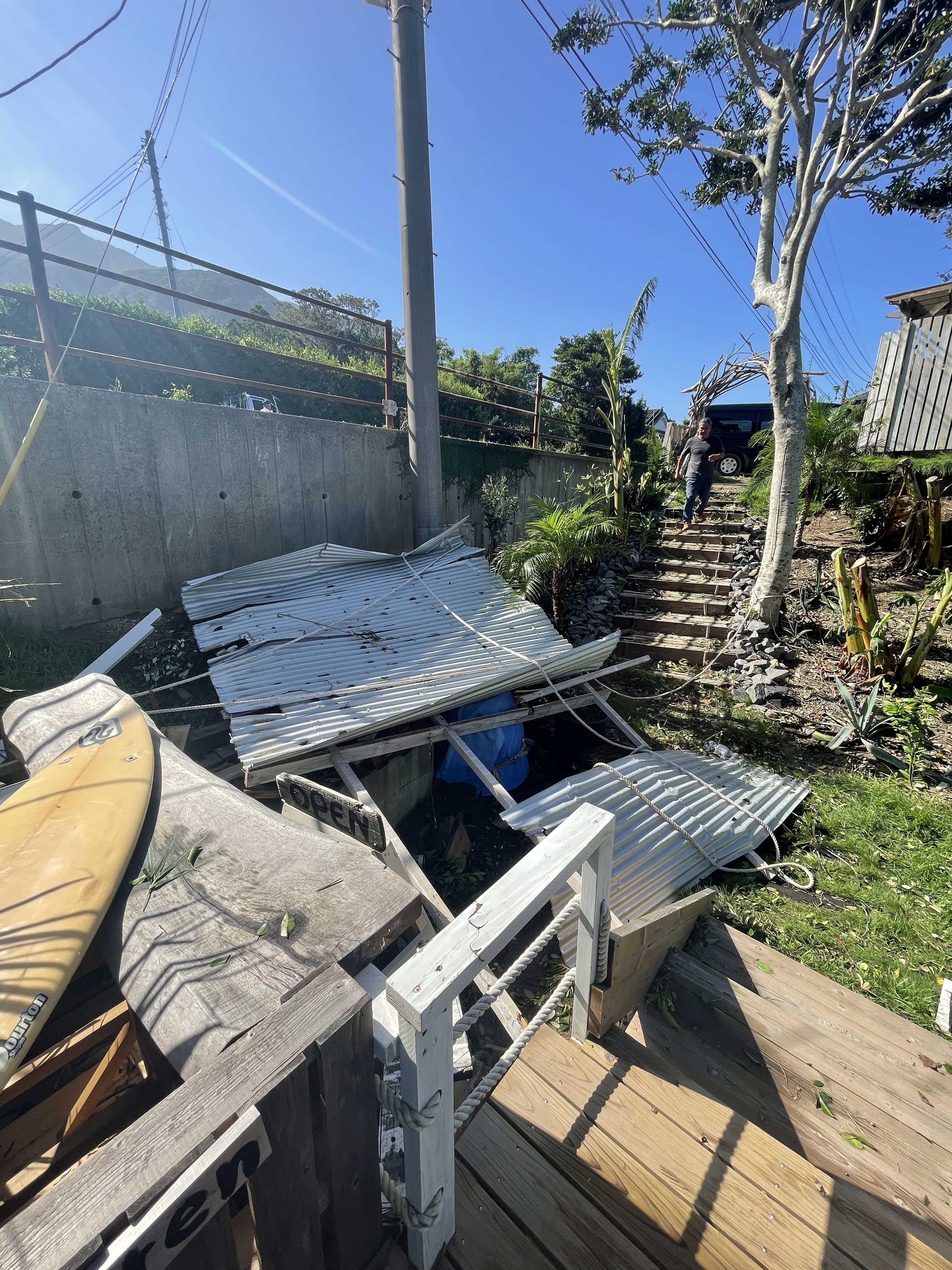 そちらのスペースも木などが当たって、柱が折れ屋根が弾き跳んでしまいました。