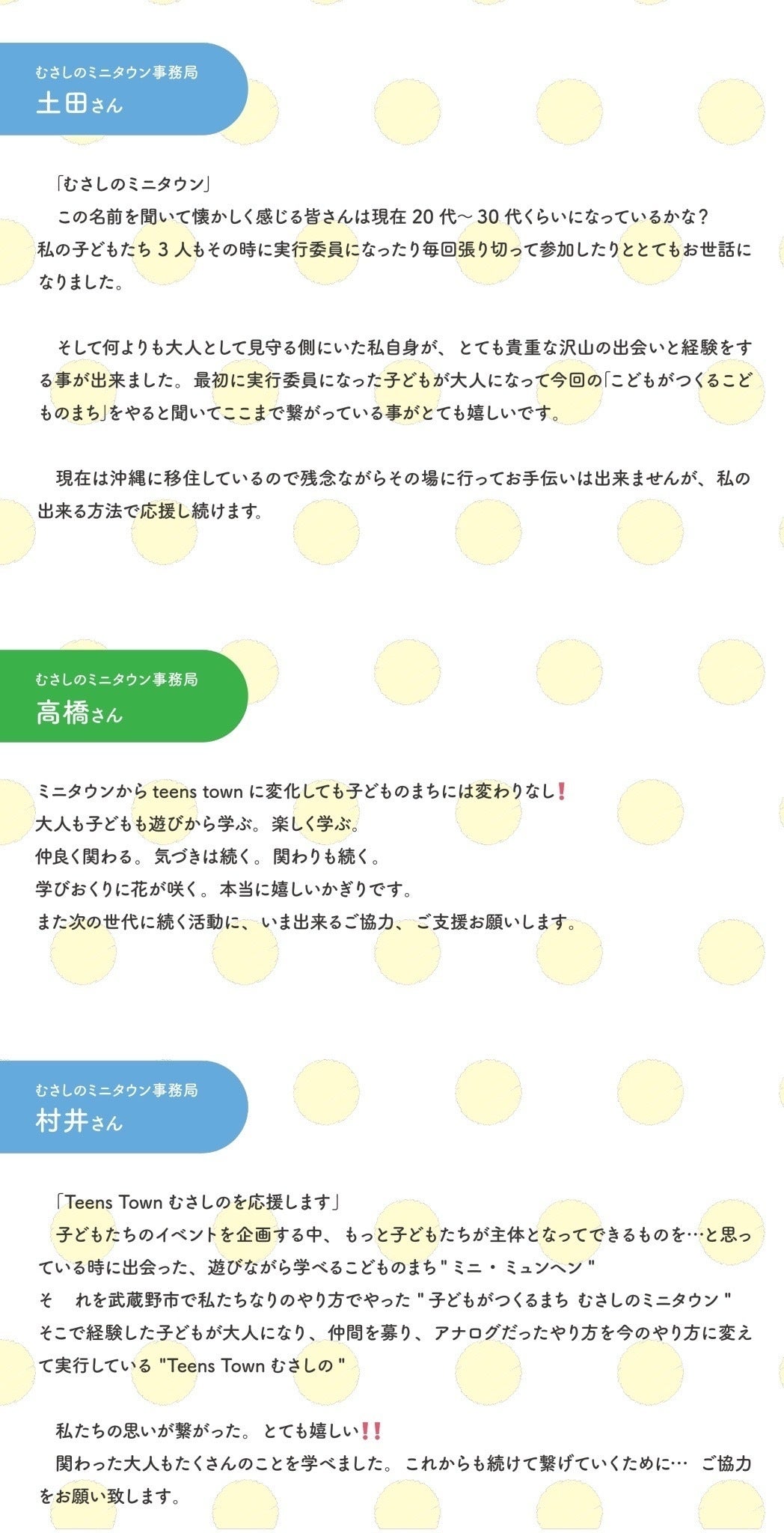 TeensTown むさしのは地域のみなさんのおかげで運営できているイベントです。
