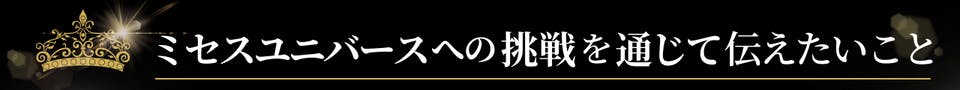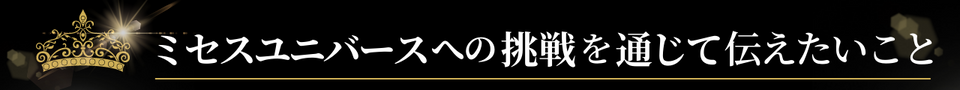 私はミセスユニバースへの挑戦を通じて、自分の力で人生を歩んでいく女性のロールモデルとなりたい。