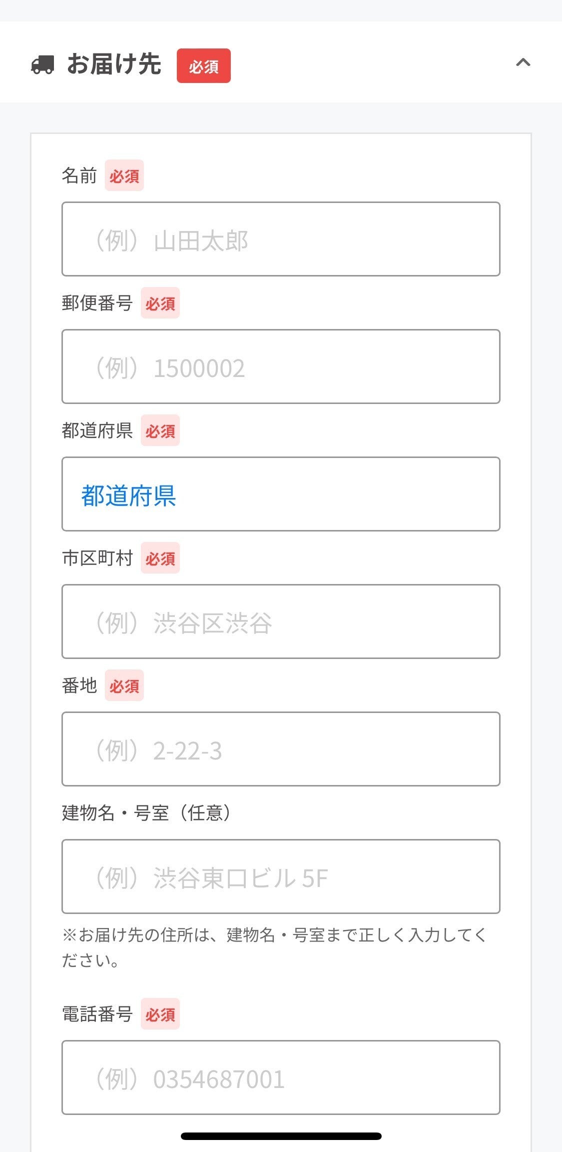 お届け先の情報を入力します。