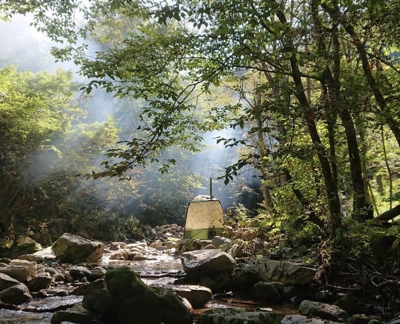 静かな自然に囲まれた中、テントサウナで入浴、そして6月には蛍が見れる清流に入りクールダウン。その後、外気浴を楽しみながら心身が「ととのう」時間に身を任せます。